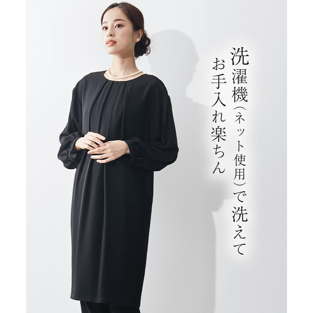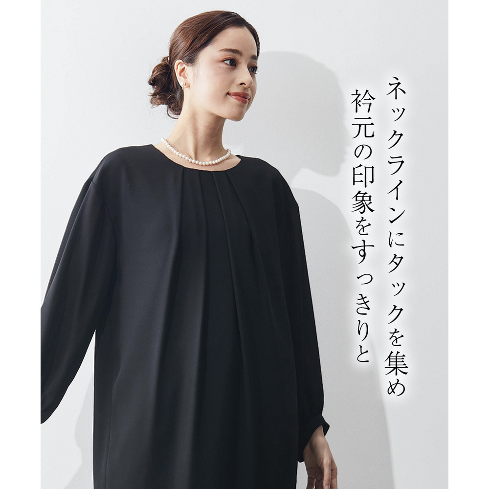 ブラックフォーマル生地(漆黒)を使用、きちんと感のある装いに