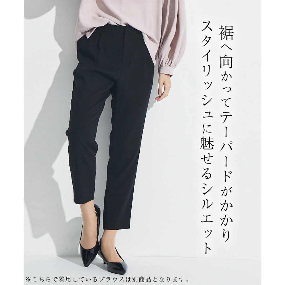 テーパードパンツがスッキリした印象に