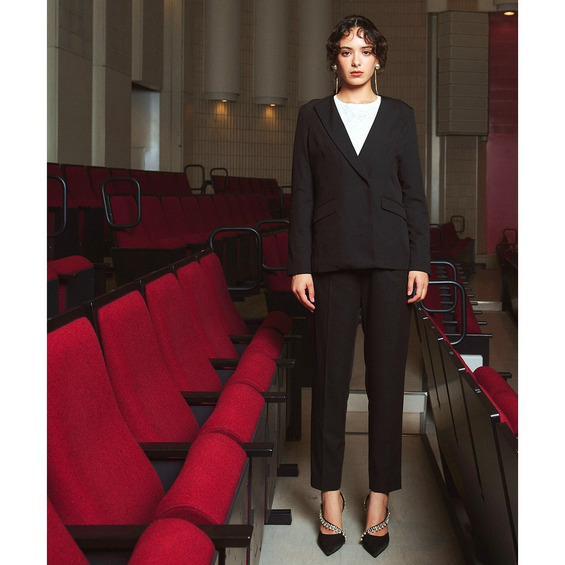 セレモニーシーンだけでなく、通勤・結婚式・参観日・七五三・普段使いなど幅広いシーンに対応できるパンツセットアップ