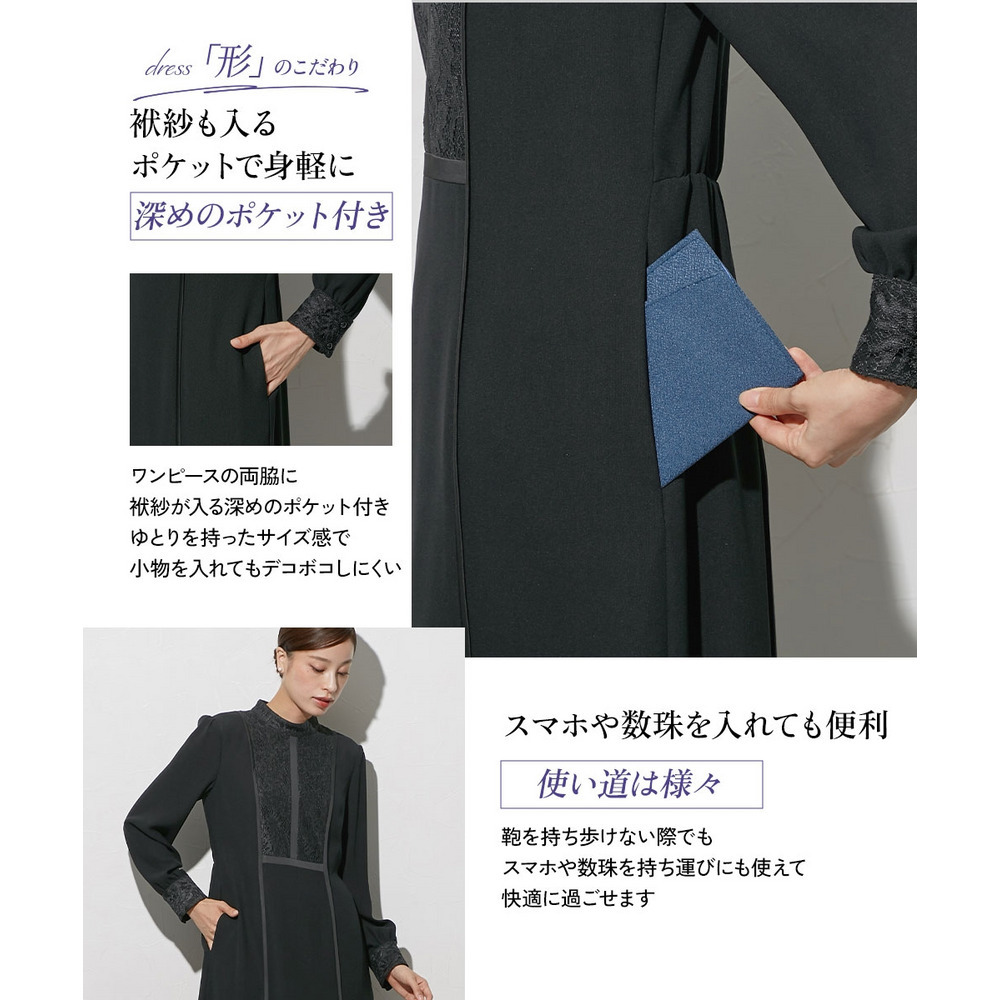ワンピースには、袱紗も収納できる深くて大きめのポケットを設計!