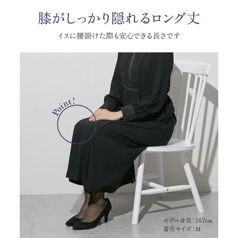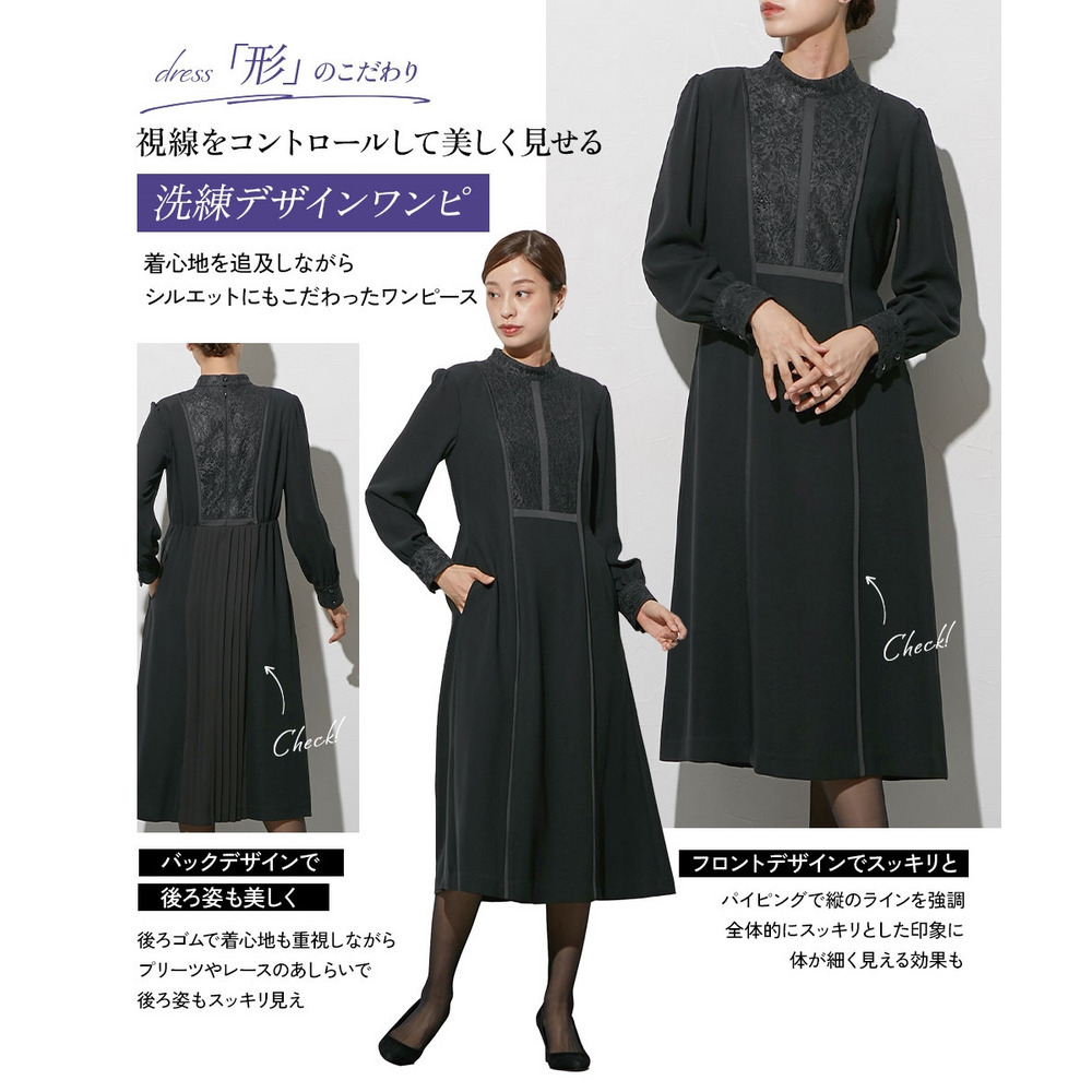 ブラックフォーマル生地(漆黒)を使用、きちんと感のある装いに