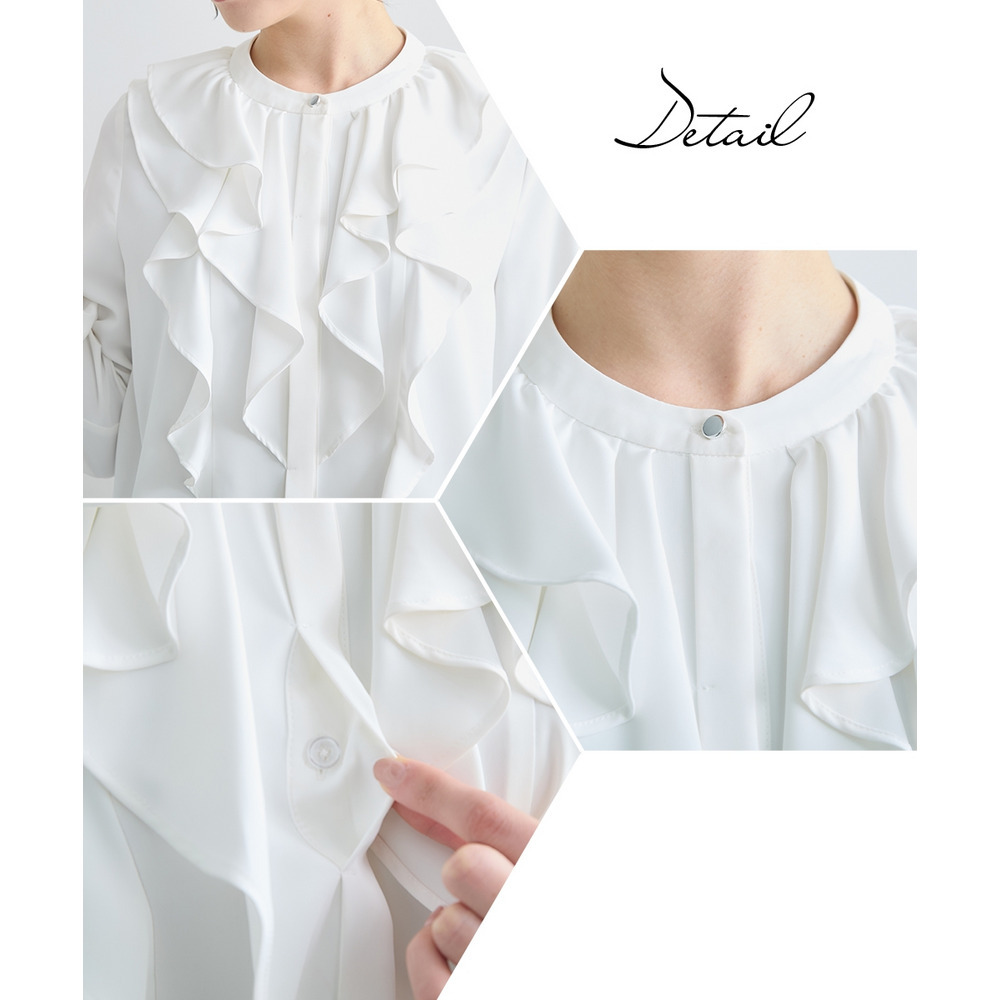 フロントフリルデザインが華やかな印象を演出してくれるデザインブラウス