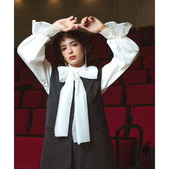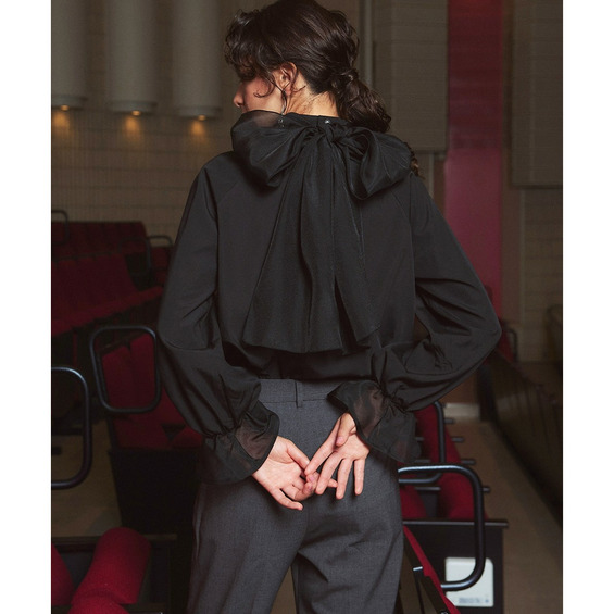 様々なシーンで着まわせるシアーオーガンジーリボン付デザインブラウス