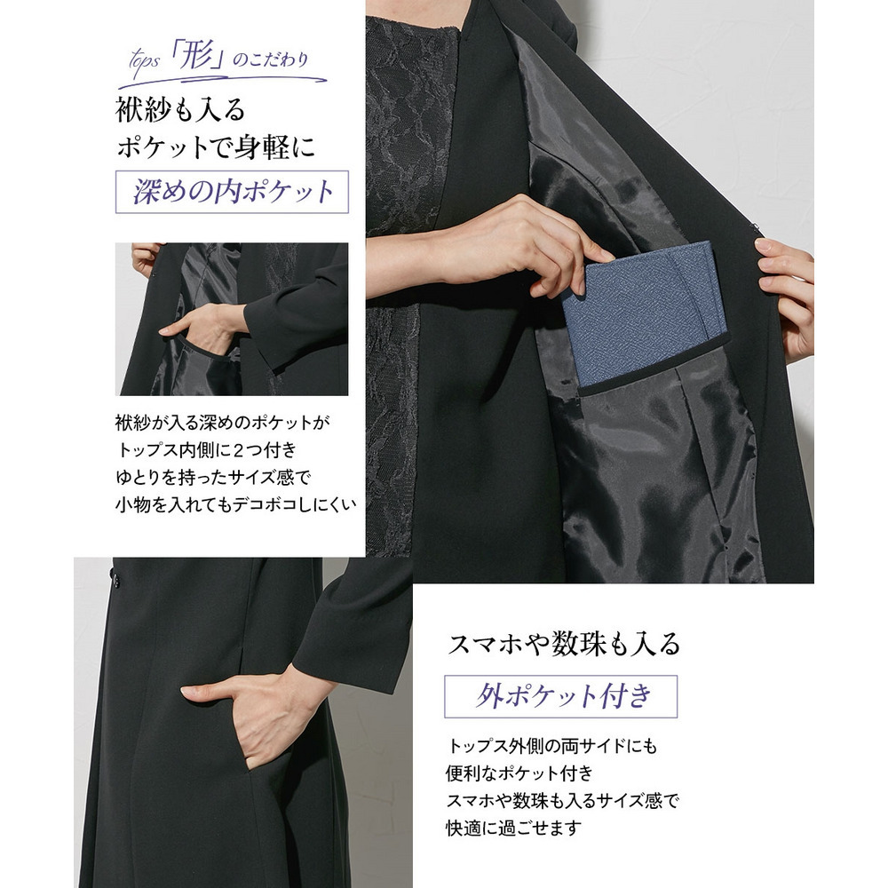 ブラックフォーマル生地(漆黒)を使用、きちんと感のある装いに