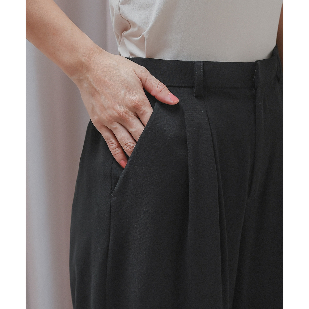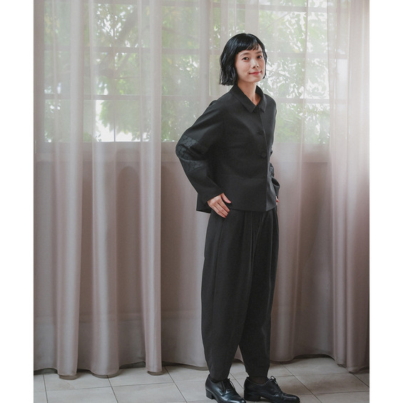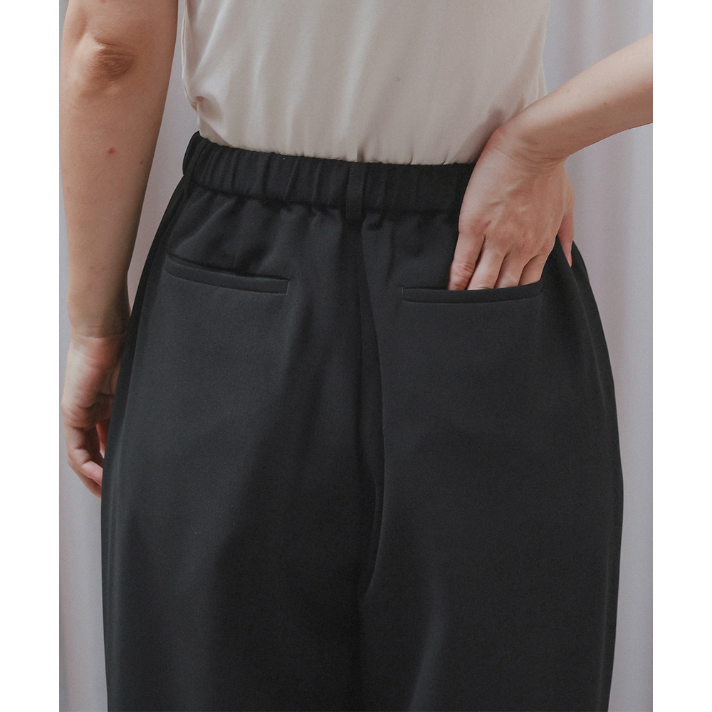パンツは裾にかけて細くなるゆるテーパードシルエット