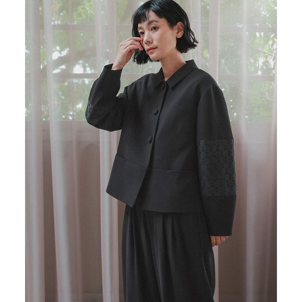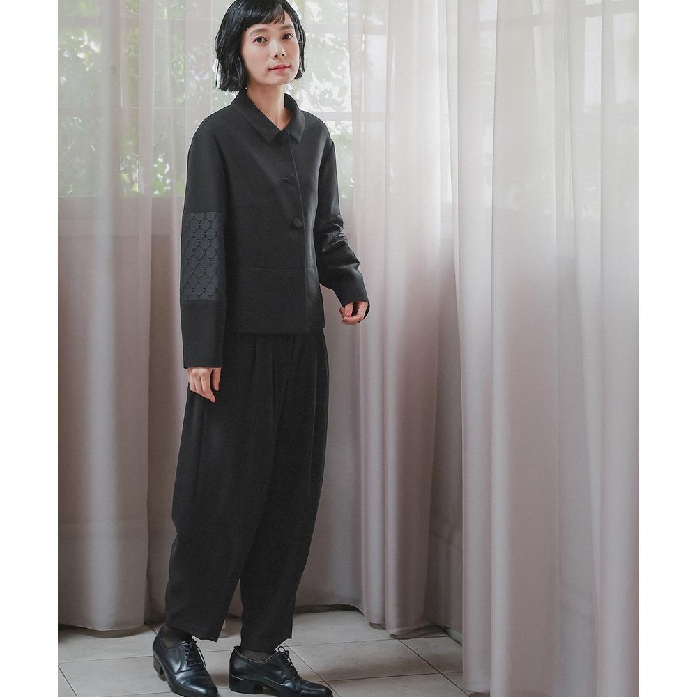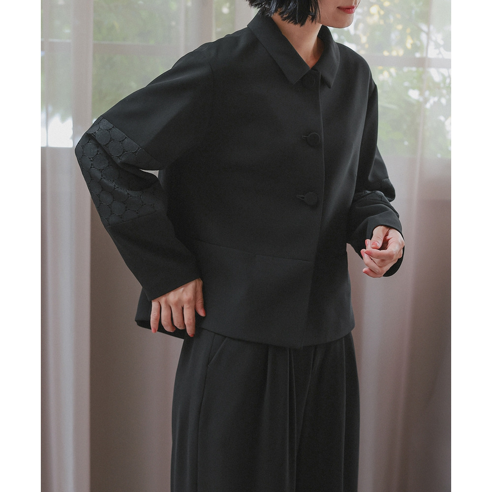 【喪服・礼服】袱紗も入る多ポケット仕様 洗える防しわ水玉レースドロップショルダージャケットコクーンパンツセットアップスーツ 大きいサイズ Neina