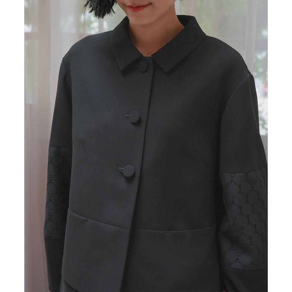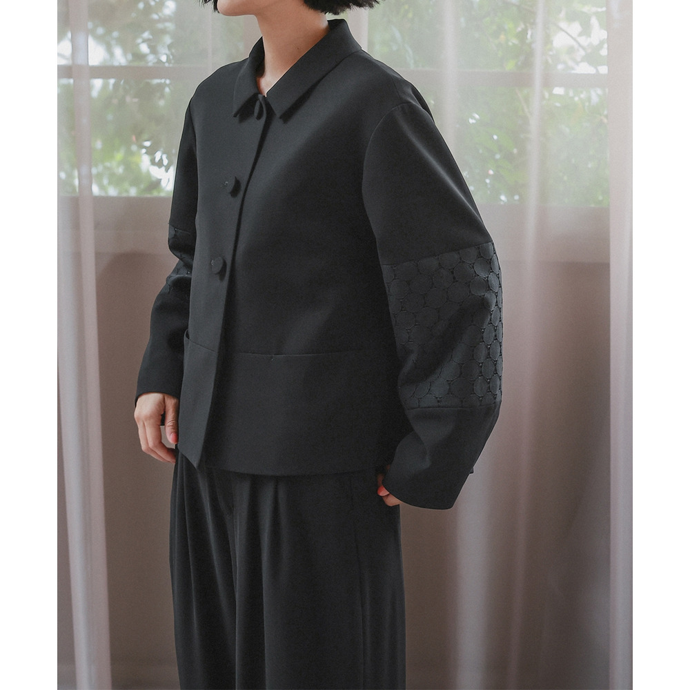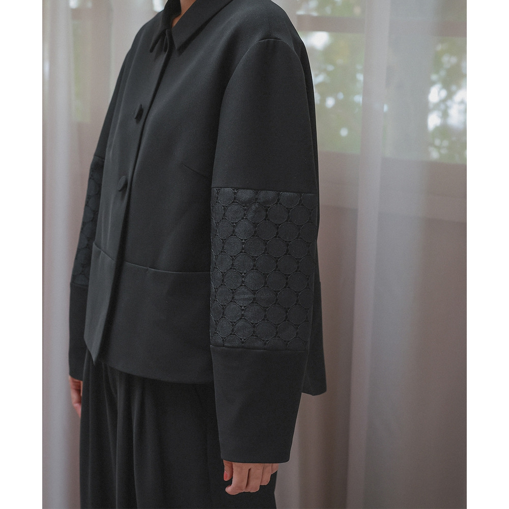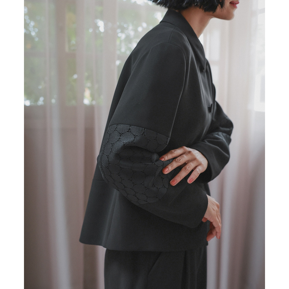 【喪服・礼服】袱紗も入る多ポケット仕様 洗える防しわ水玉レースドロップショルダージャケットコクーンパンツセットアップスーツ 大きいサイズ Neina