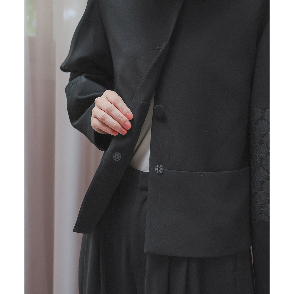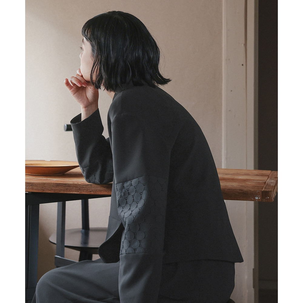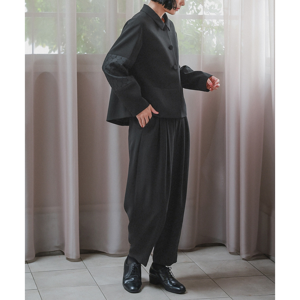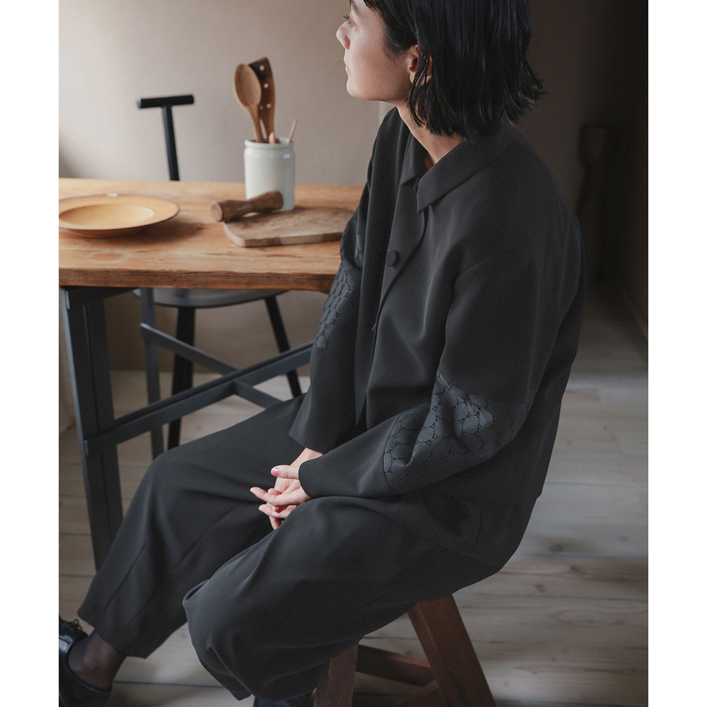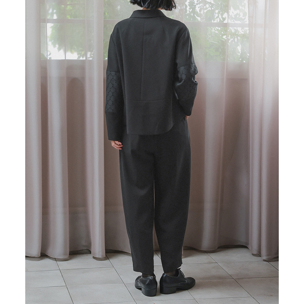 | 素材 | 品質=[表地]ポリエステル100%(織物)[レース部]ポリエステル100%(編物)[裏地]ポリエステル100%(織物) 【裏地】有(ジャケット・パンツ:総裏) ジャケット:肩パッド無 前ボタン開 ポケット前2・内ポケット左右あり パンツ:前ファスナー内ホック開 ウエスト後ゴム入 ポケット前2・後2 ※柄の出方が多少異なる場合があります。 |