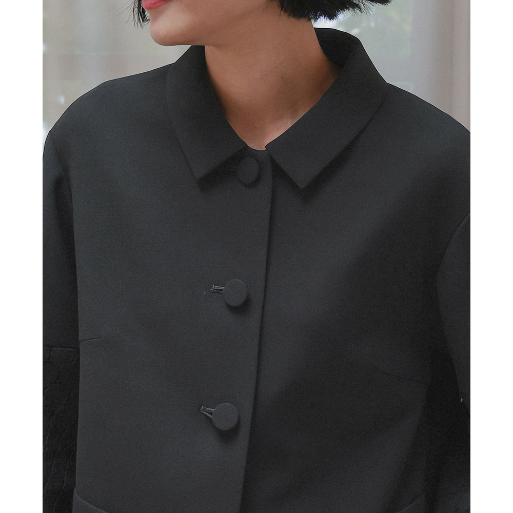 ブラックフォーマル生地(漆黒)を使用、きちんと感のある装いに