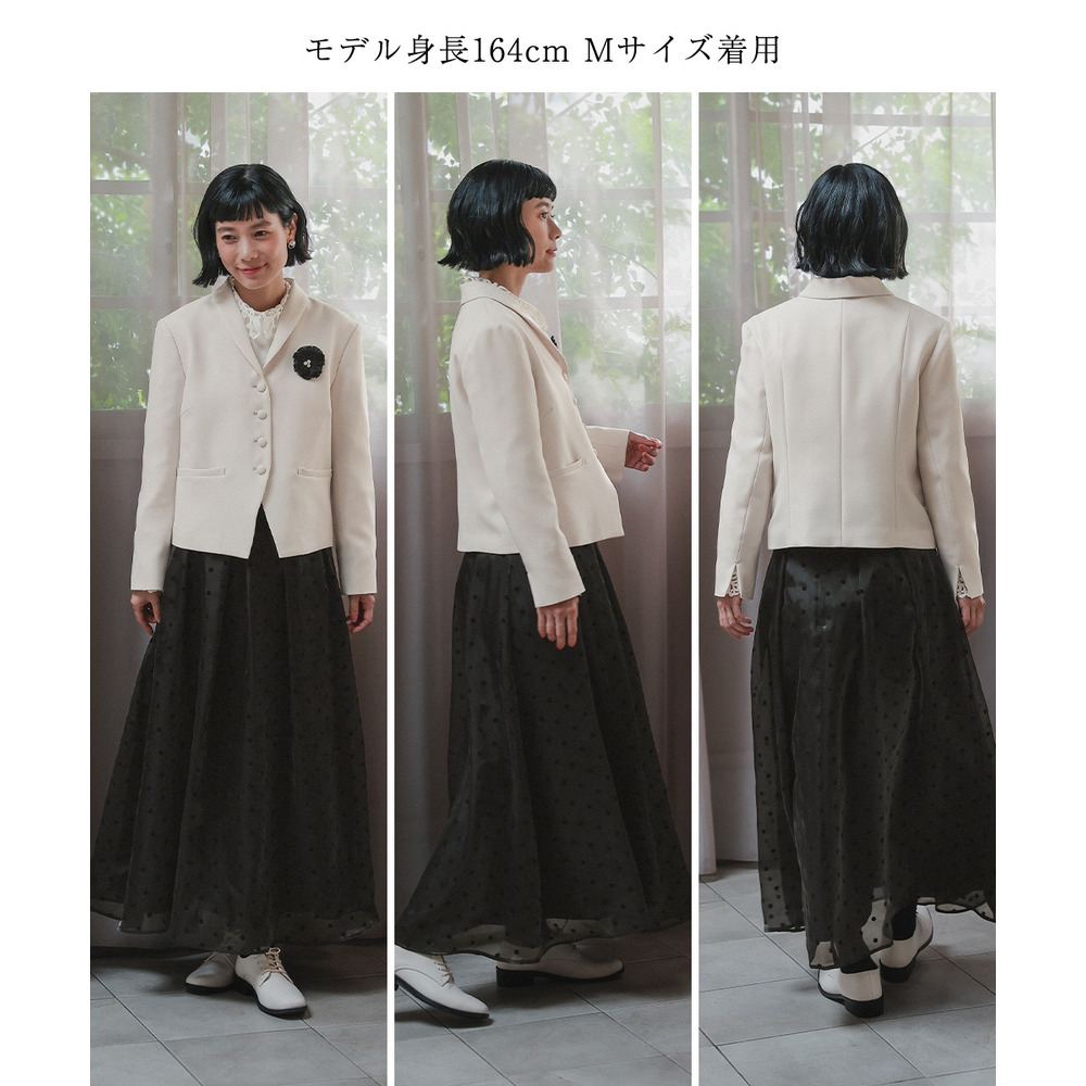 【入学式・卒業式・フォーマル】ショールカラーセミスクエア4つ釦ジャケット+ドットフロッキースカートアンサンブル 大きいサイズ Neina