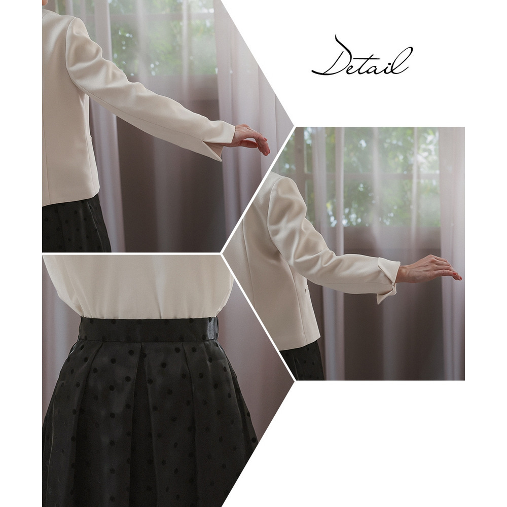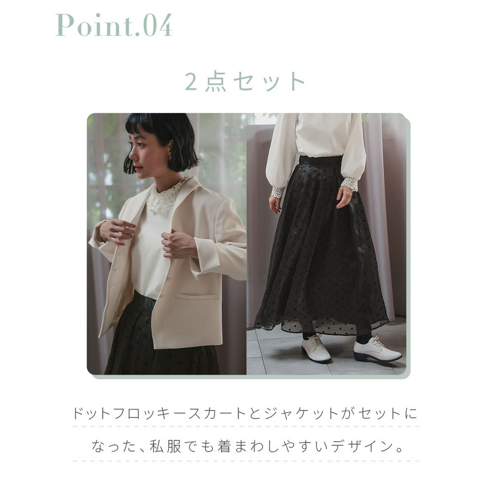 ドット柄スカートが上品で可愛いアンサンブルスーツ