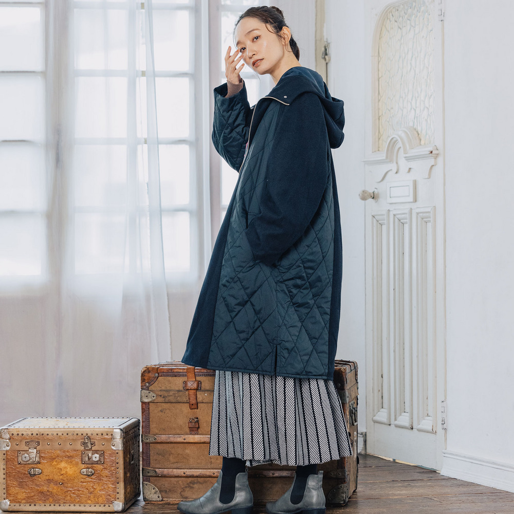 21号(6L~) FONTLAB ウール×キルティングフーディーコート