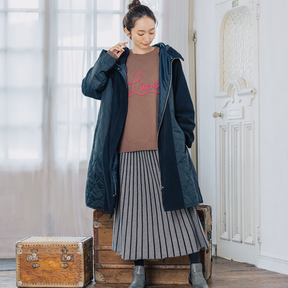 | 素材 | #28:表地ポリエステル80% 毛14% アクリル3% レーヨン2% ナイロン1% #40:表地ポリエステル58% 毛18% アクリル10% レーヨン9% ナイロン4% 綿1% 別布(キルティング部分)ナイロン100% 中わた(キルティング部分)ポリエステル100% 裏地ポリエステル100% |