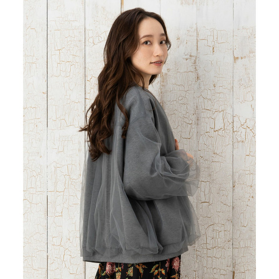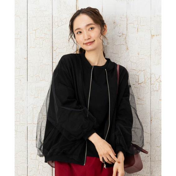ふわっとしたチュール生地をたっぷりと重ねたブルゾン。