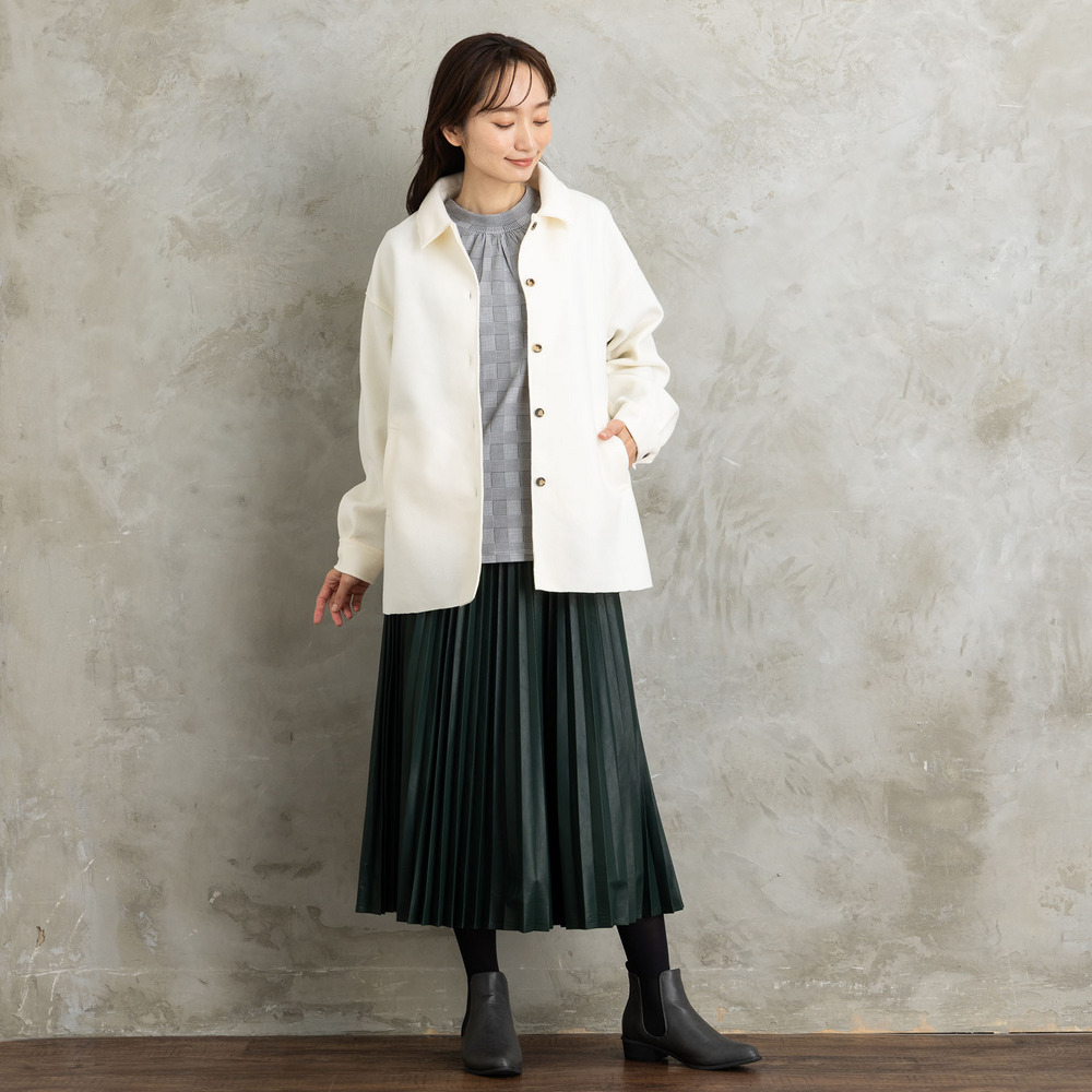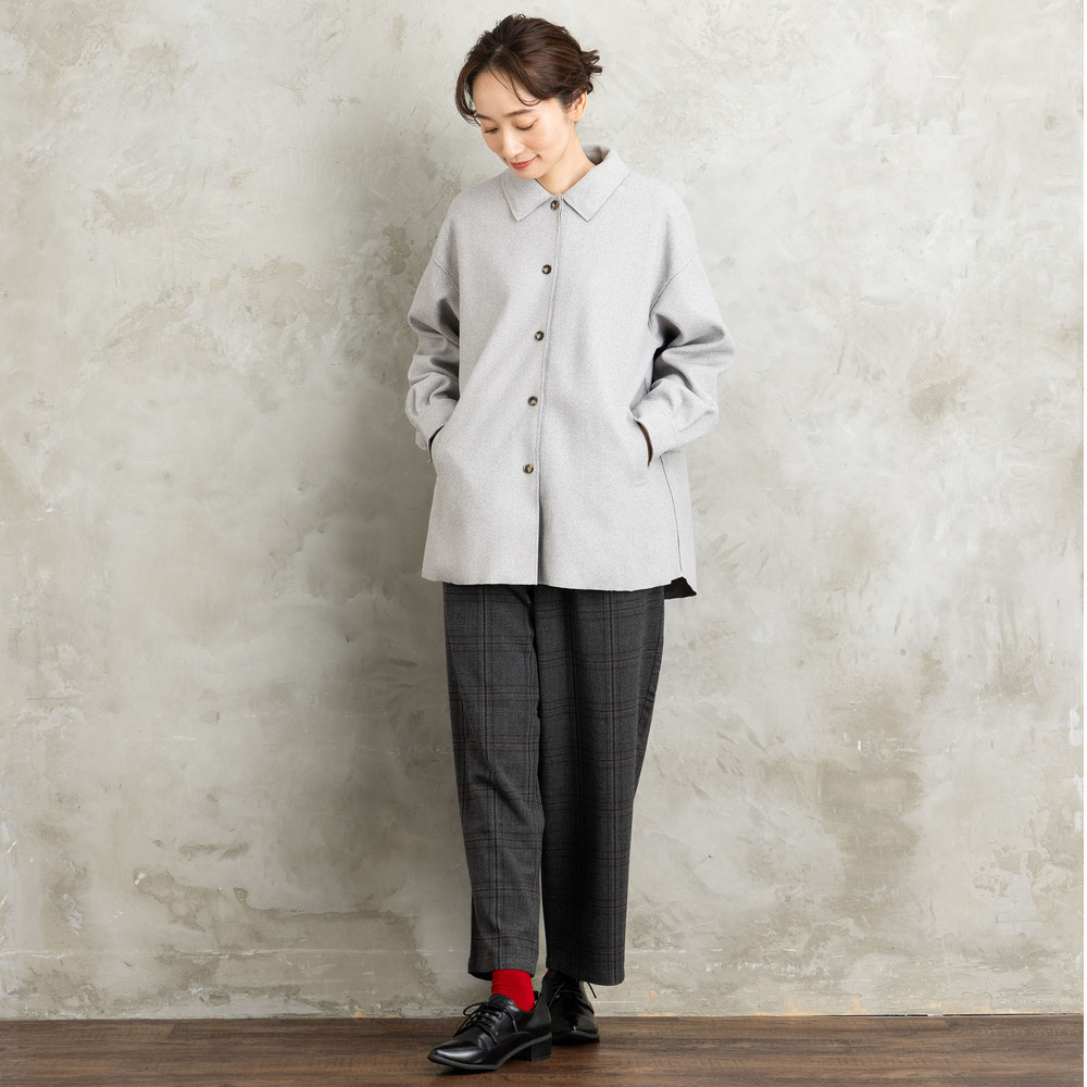 ウール調のライトメルトン素材で仕立てた、上品な温もりを感じる一枚。