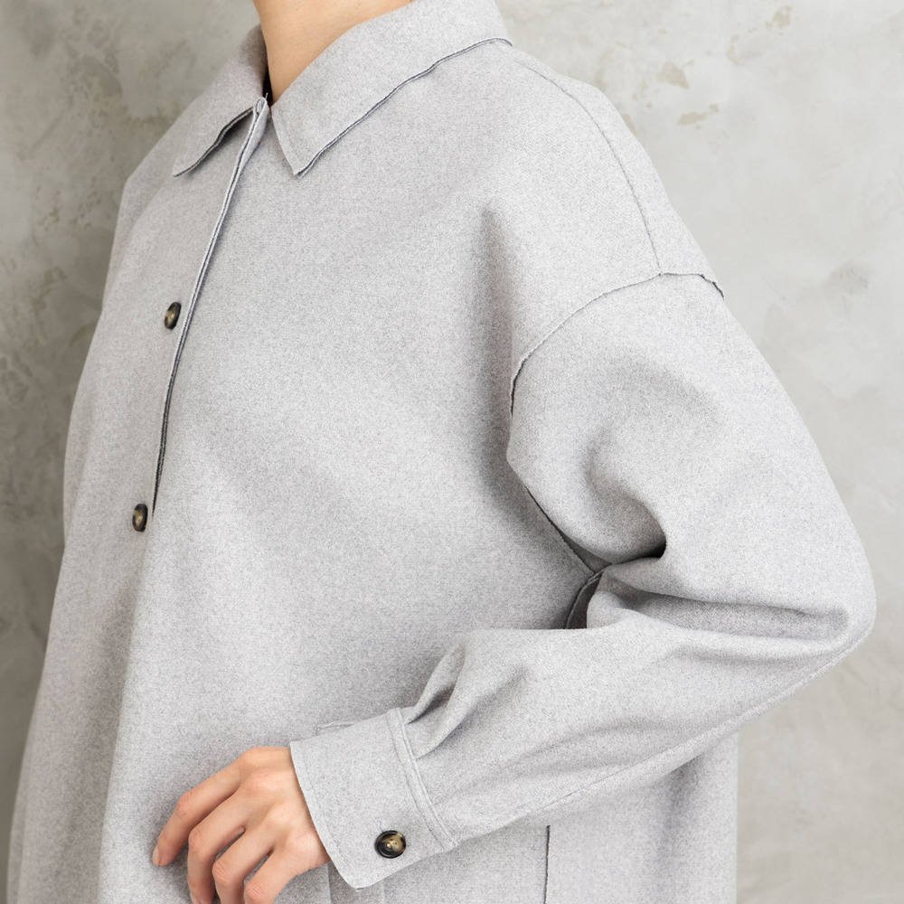 ボタンを閉じてトップス風にも、開けて軽いアウターとしても活躍します。