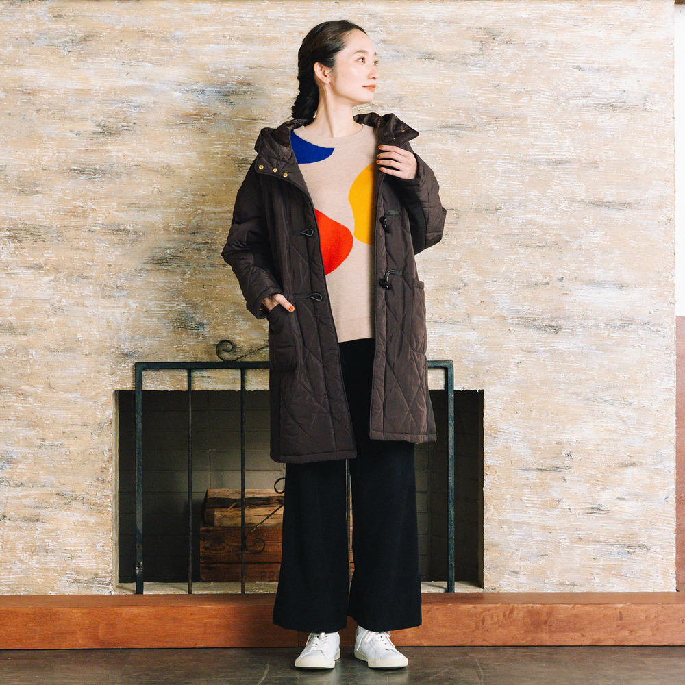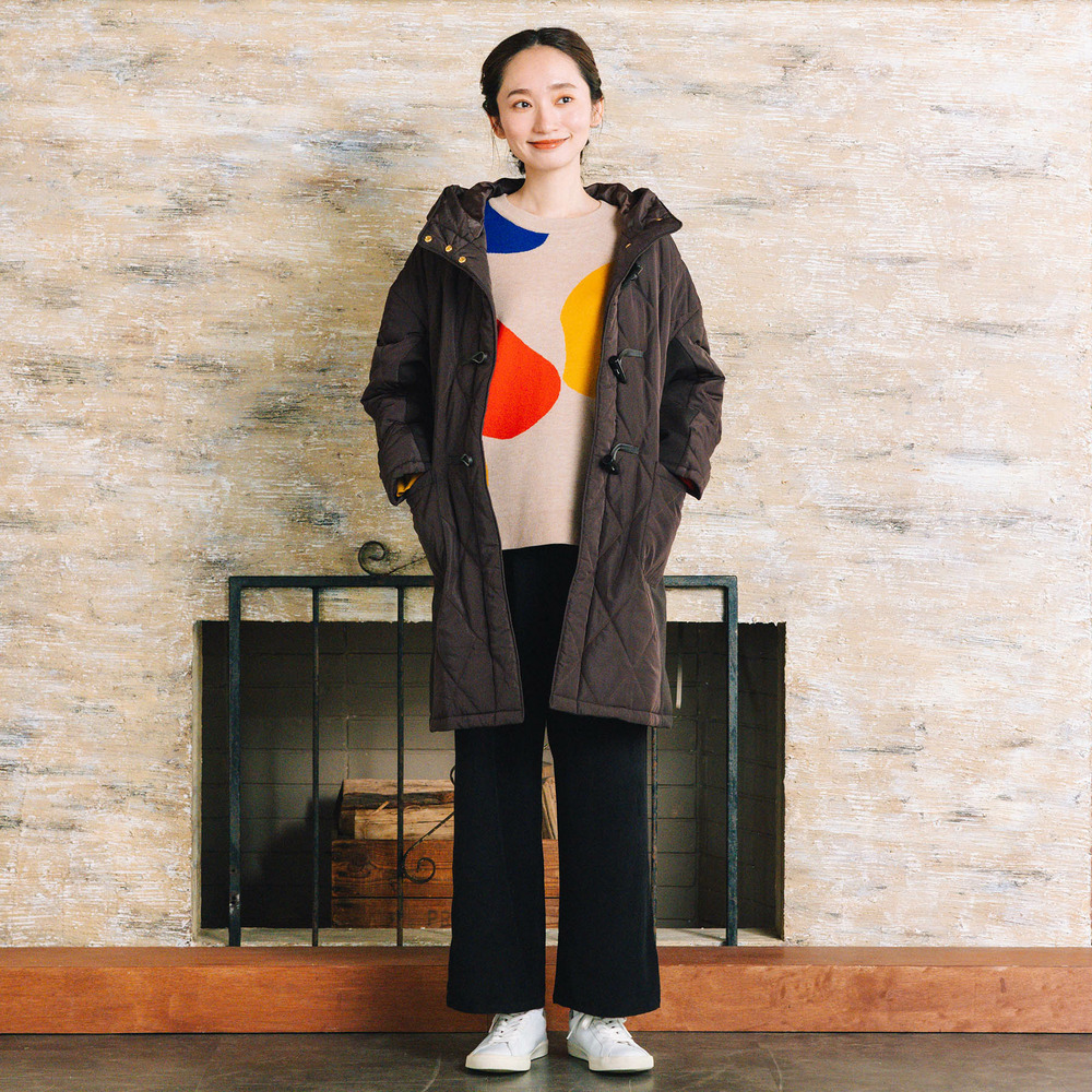 ベージュベースに映える配色が、着るだけで華やかさをプラスします。
