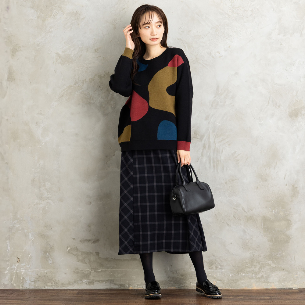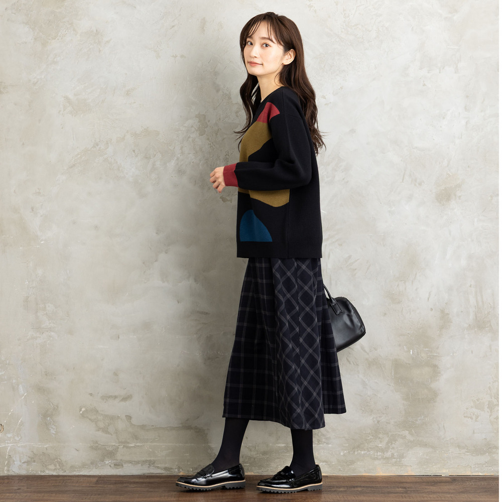 無地のスカートと合わせれば、大人っぽくバランスの取れた印象に。