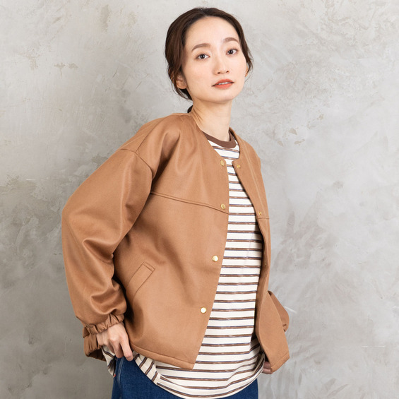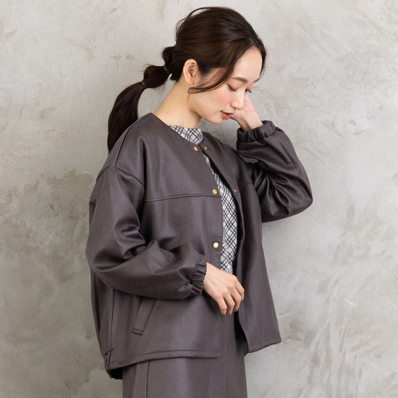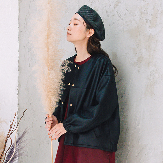 【柔らかな艶感が魅力、マシュマロレザーライクブルゾン】