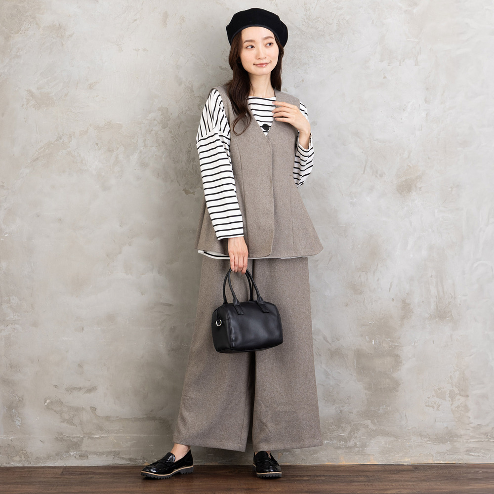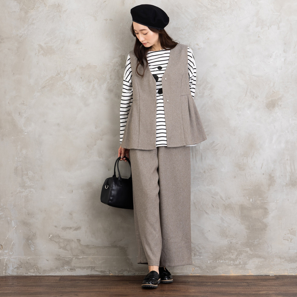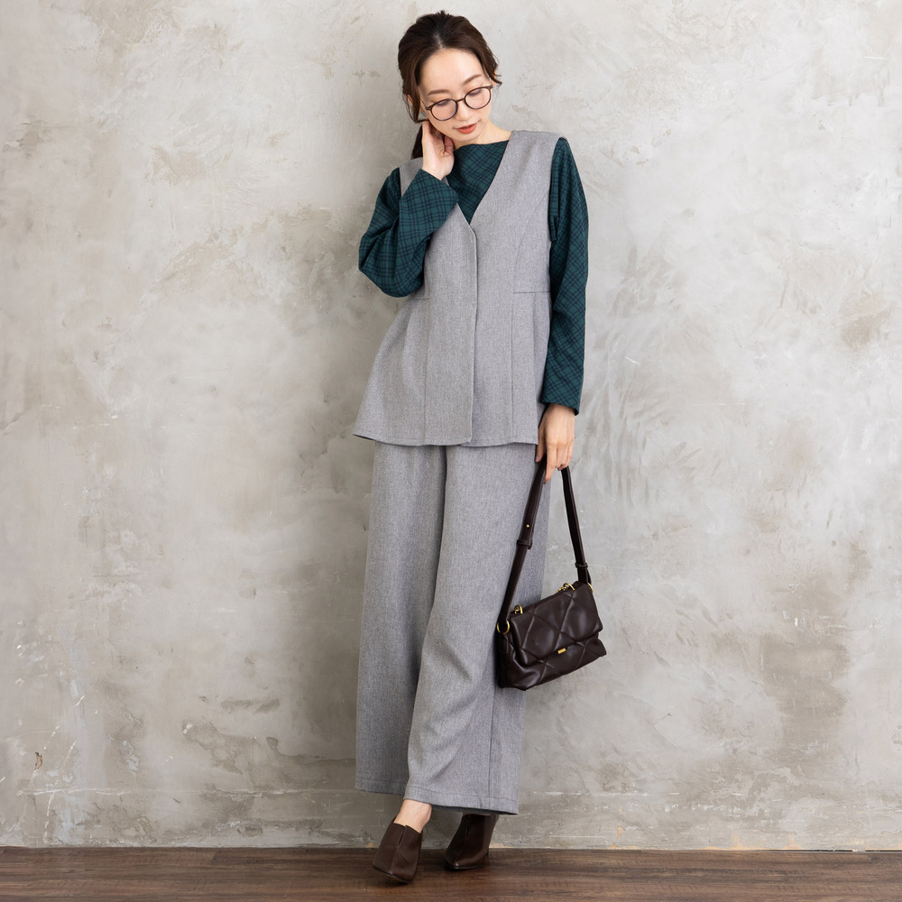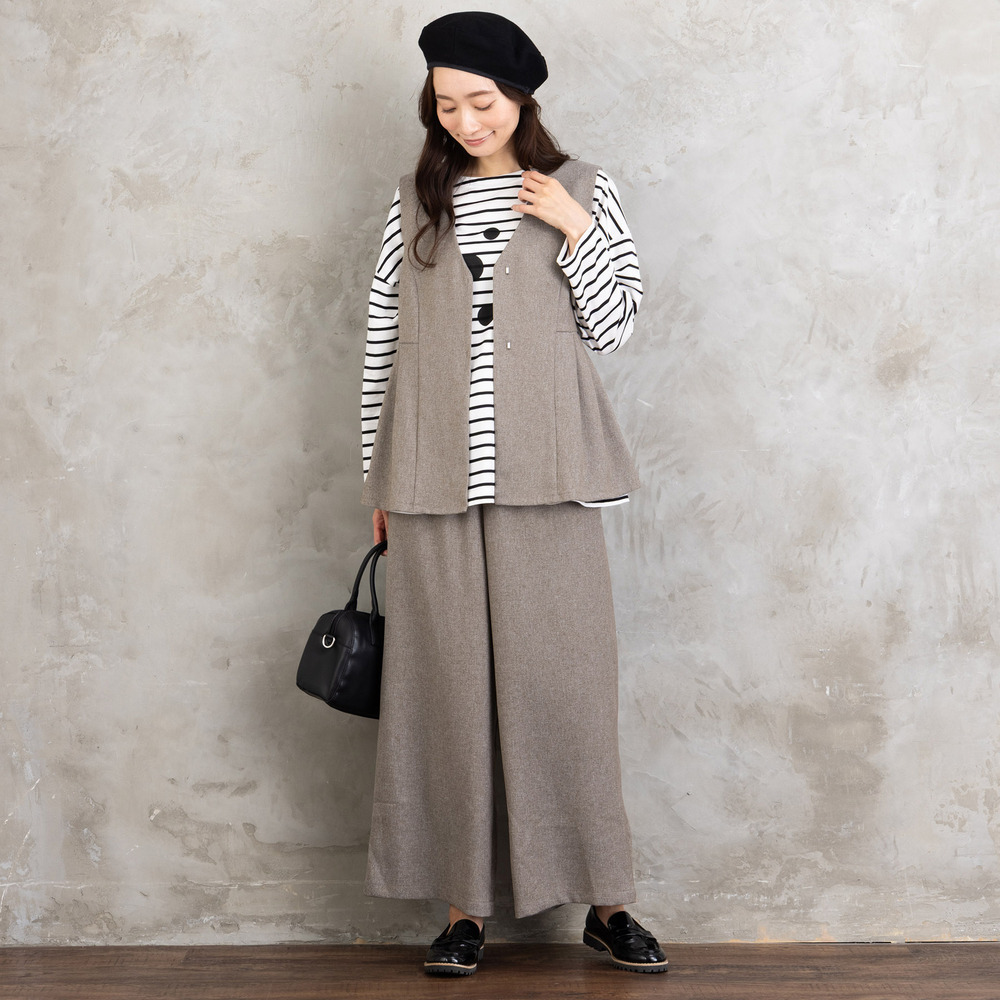 【洗練された雰囲気を纏う、ジレ×ワイドパンツセットアップ】