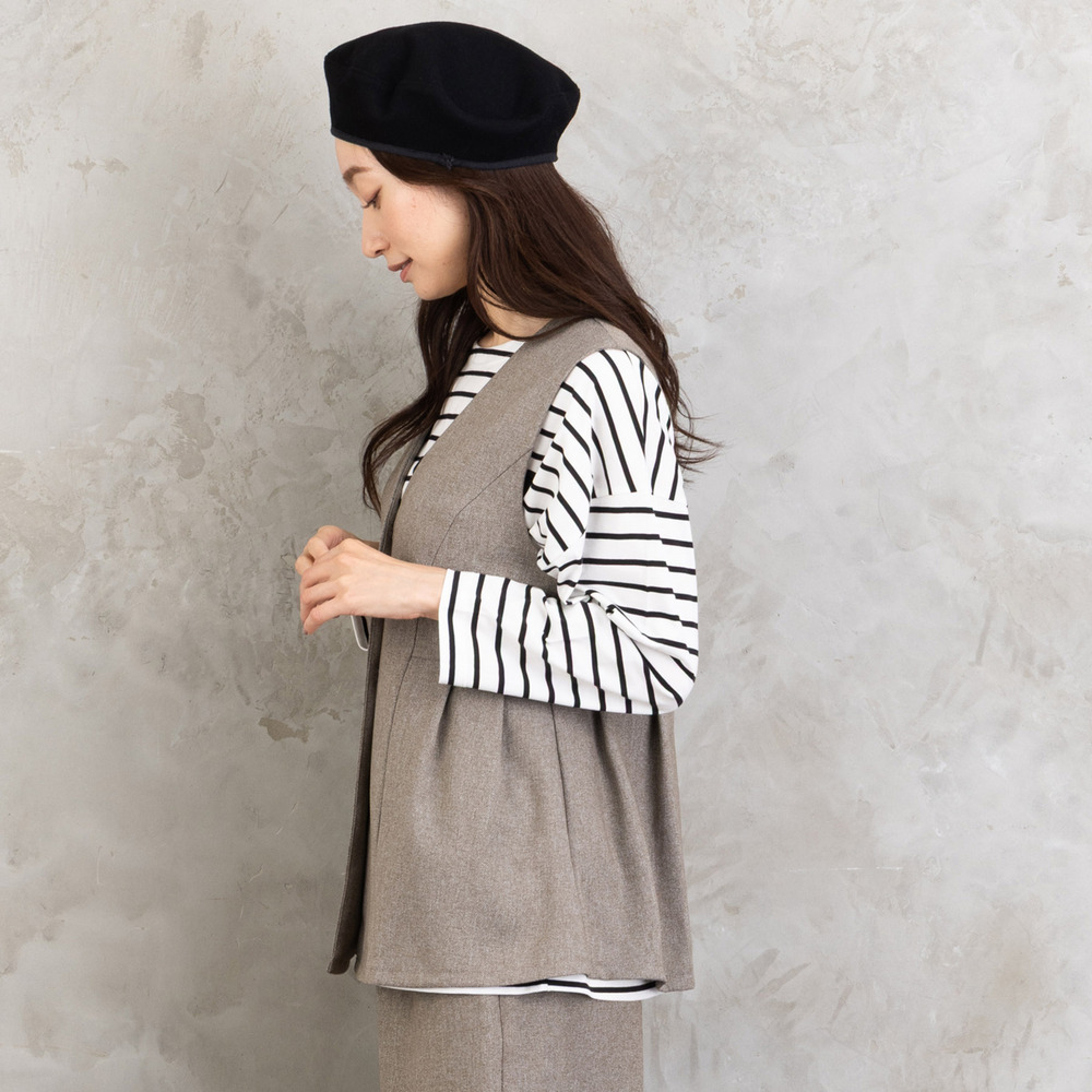 ・ジレのタックが女性らしいシルエットを演出