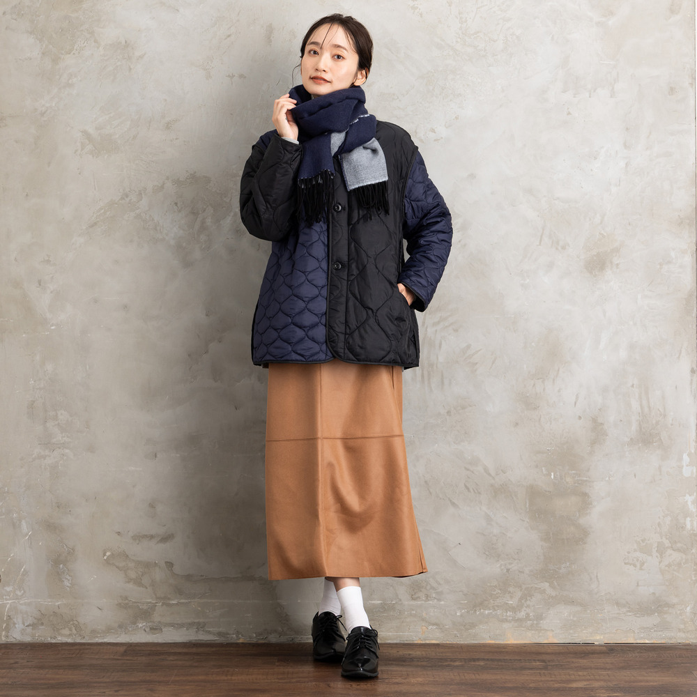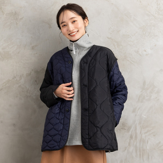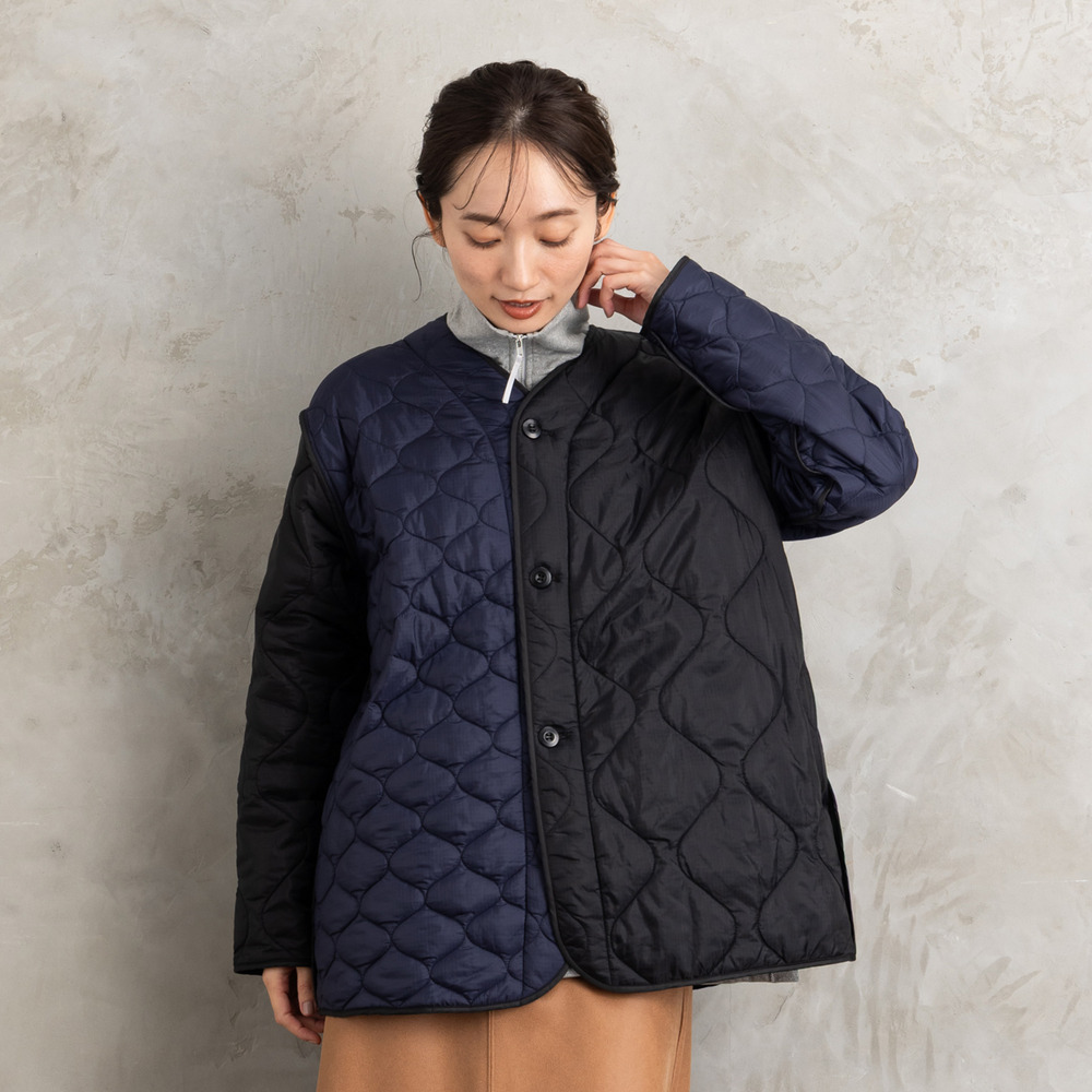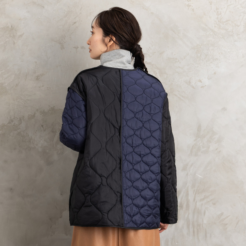 【異ピッチ配色が映える、キルティングMIXブルゾン】
