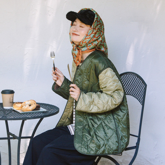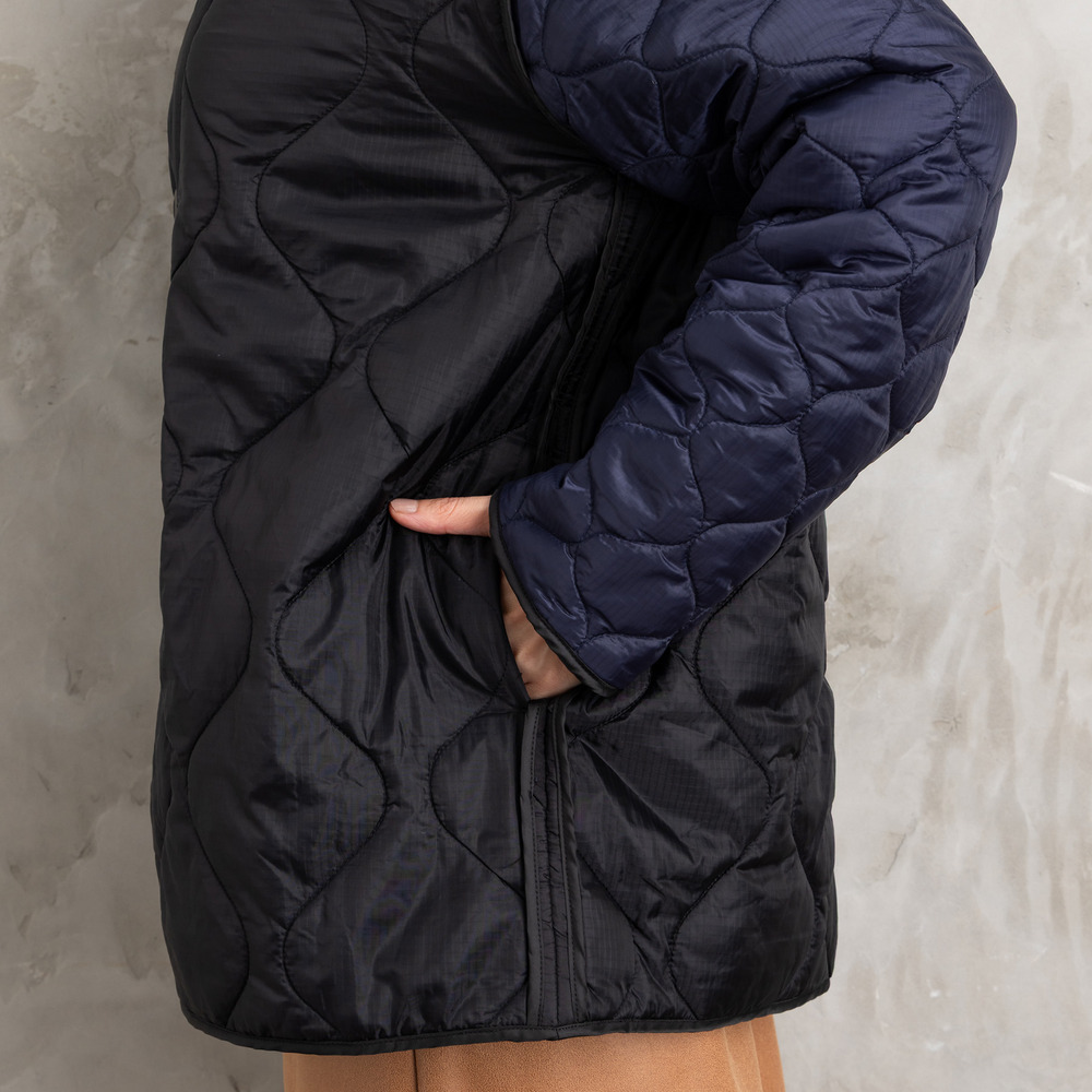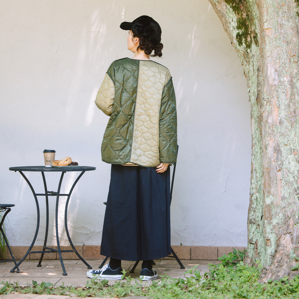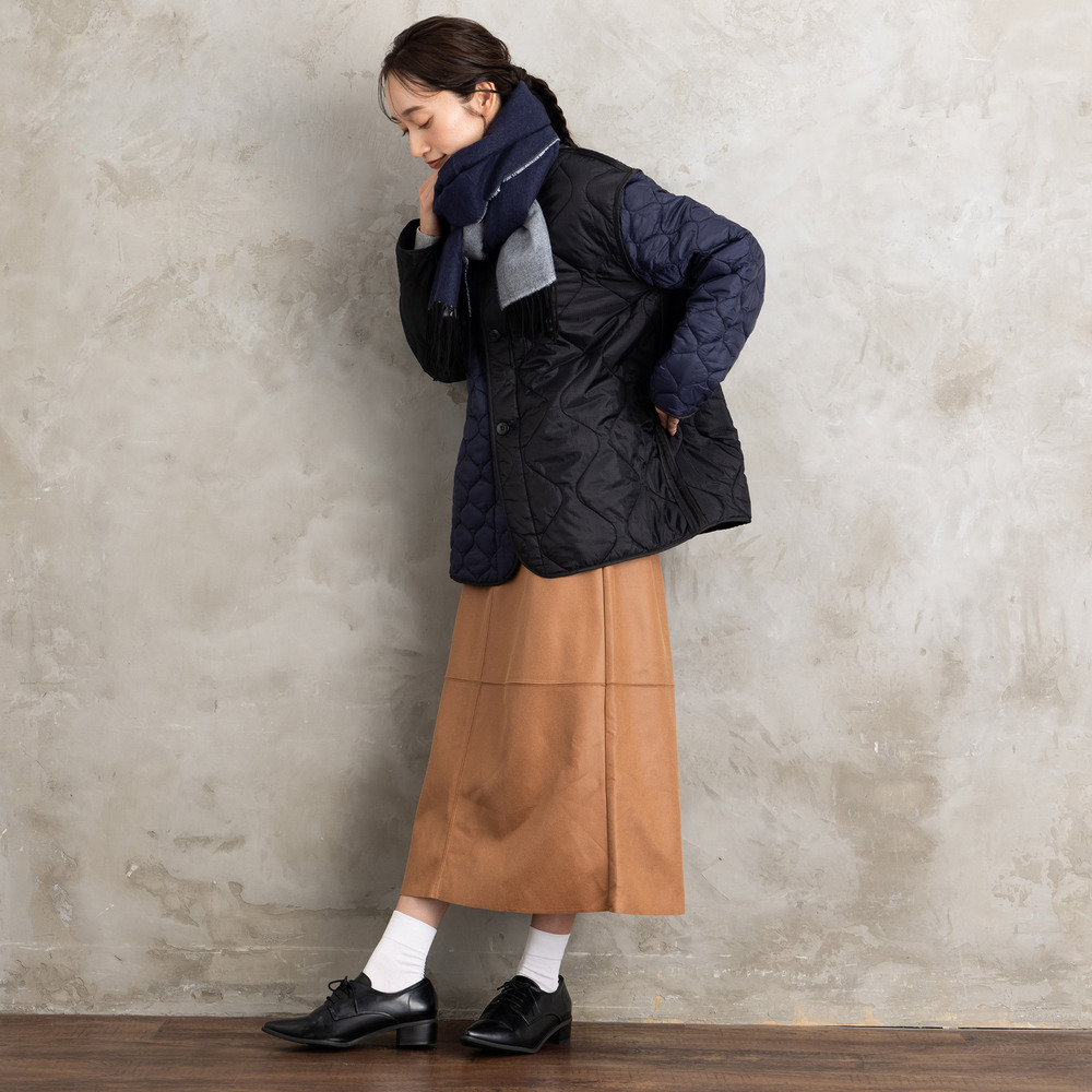 【異ピッチ配色が映える、キルティングMIXブルゾン】