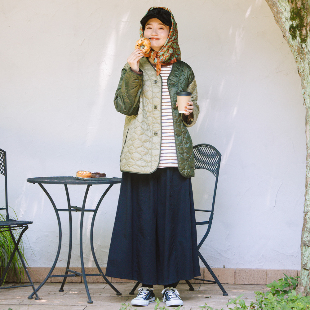 カットソーやニットに重ねて、軽アウター感覚で着回せます。