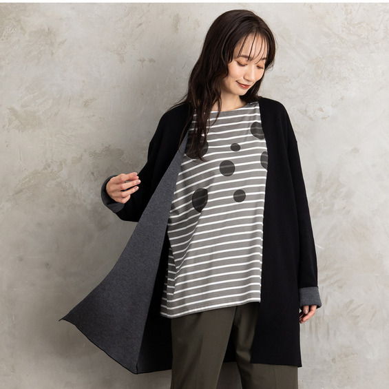 軽やかな着心地で、季節の変わり目にぴったりの一枚です。