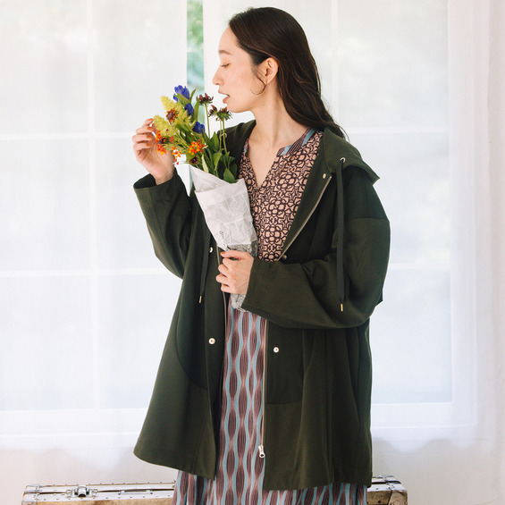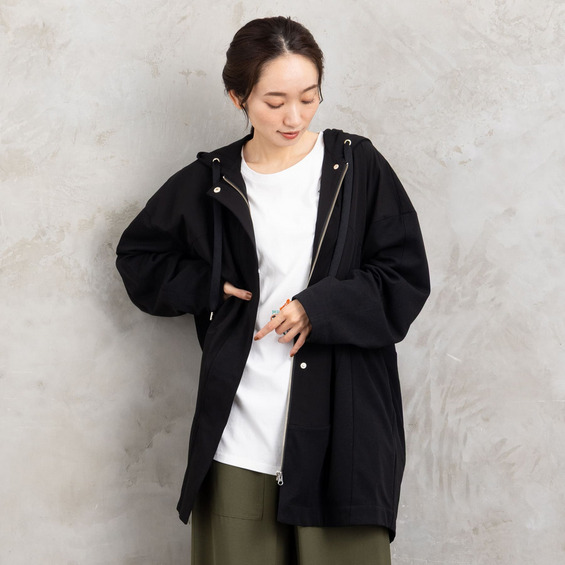 【異素材の魅力が映える、布帛コンビマウンテンパーカー】