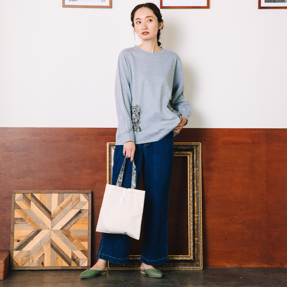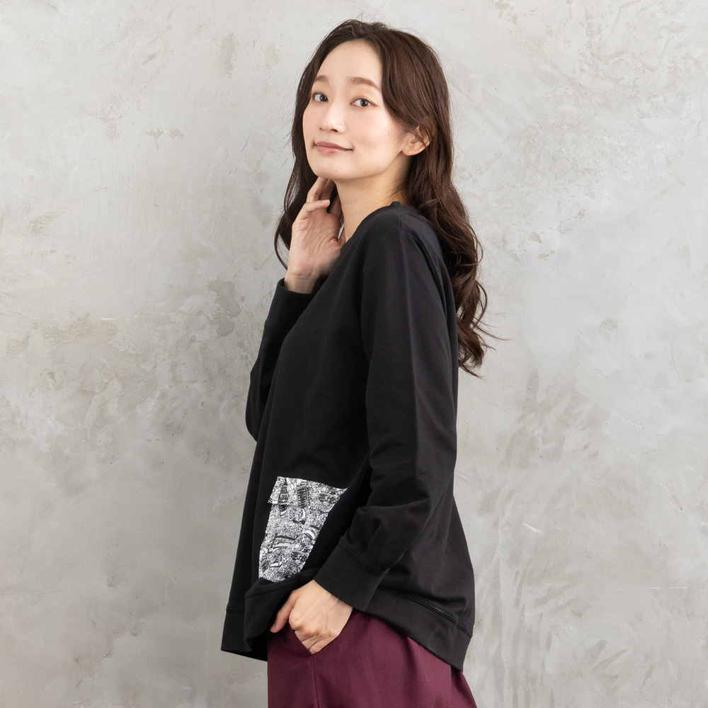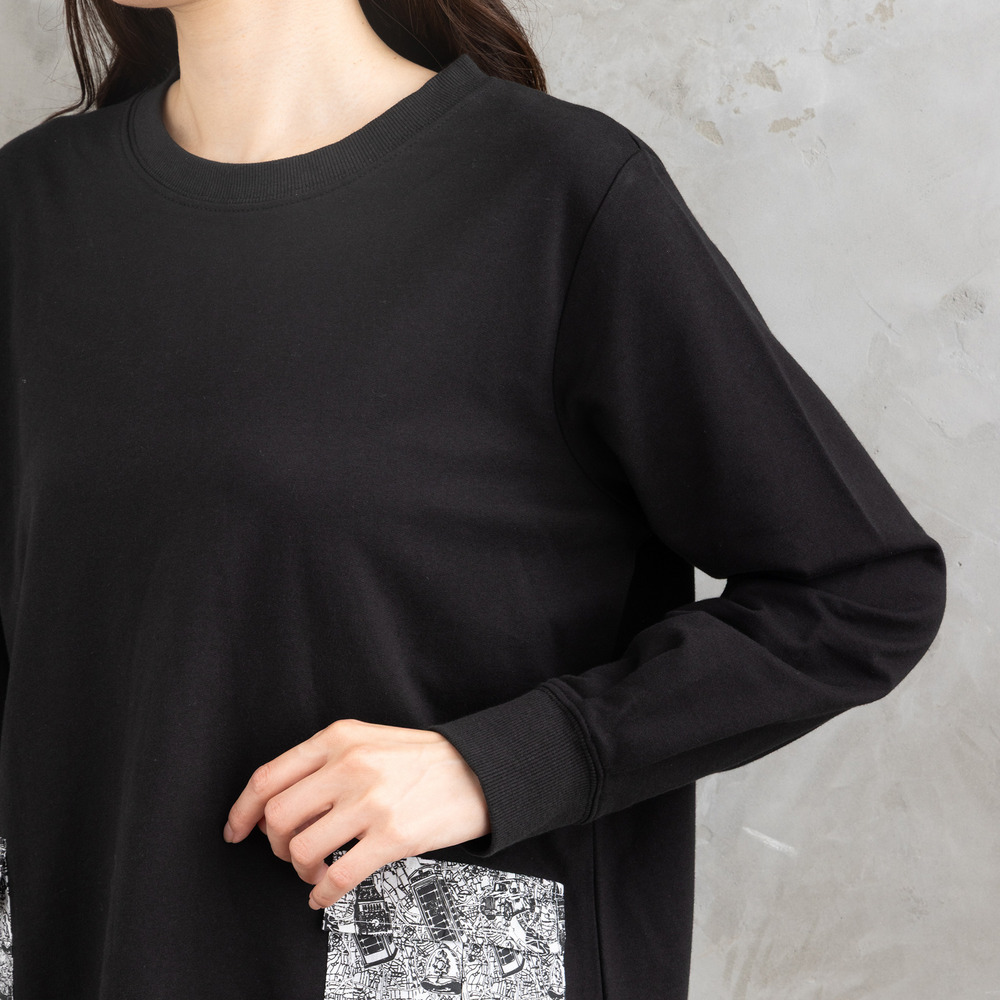 ・デザインポイント:モノトーンアートプリント/袖&裾の切り替え/ドロップショルダー