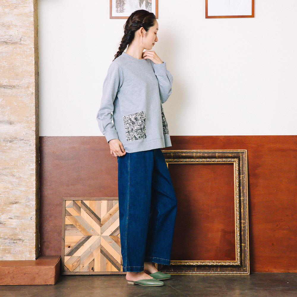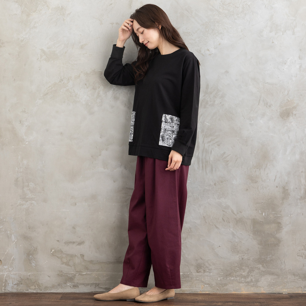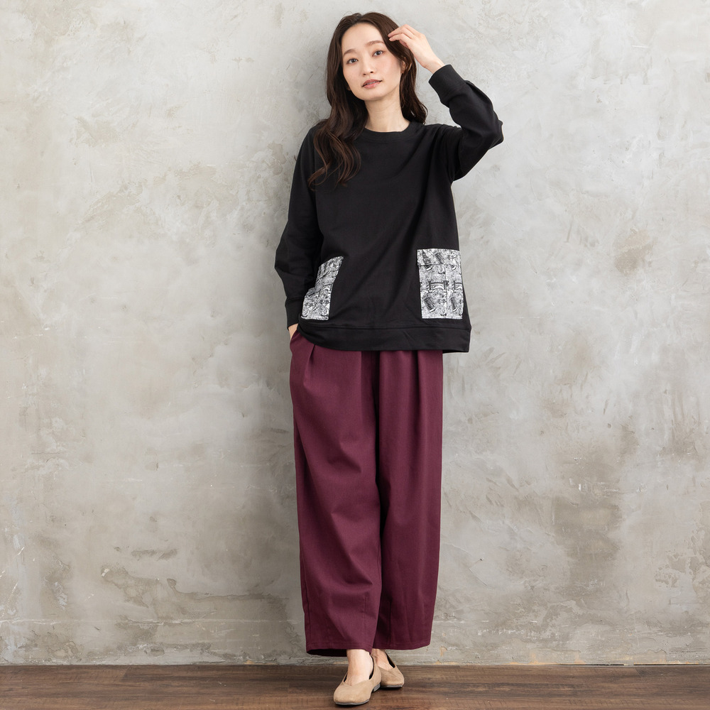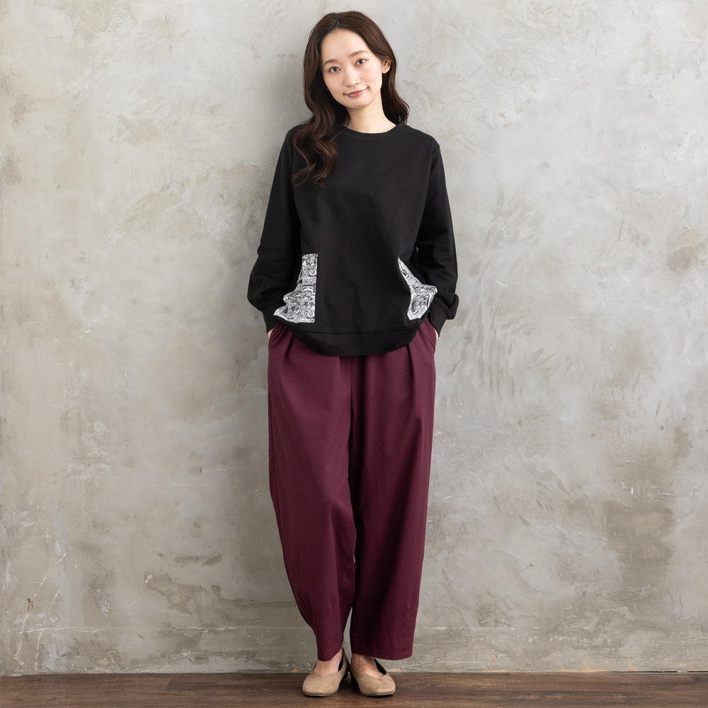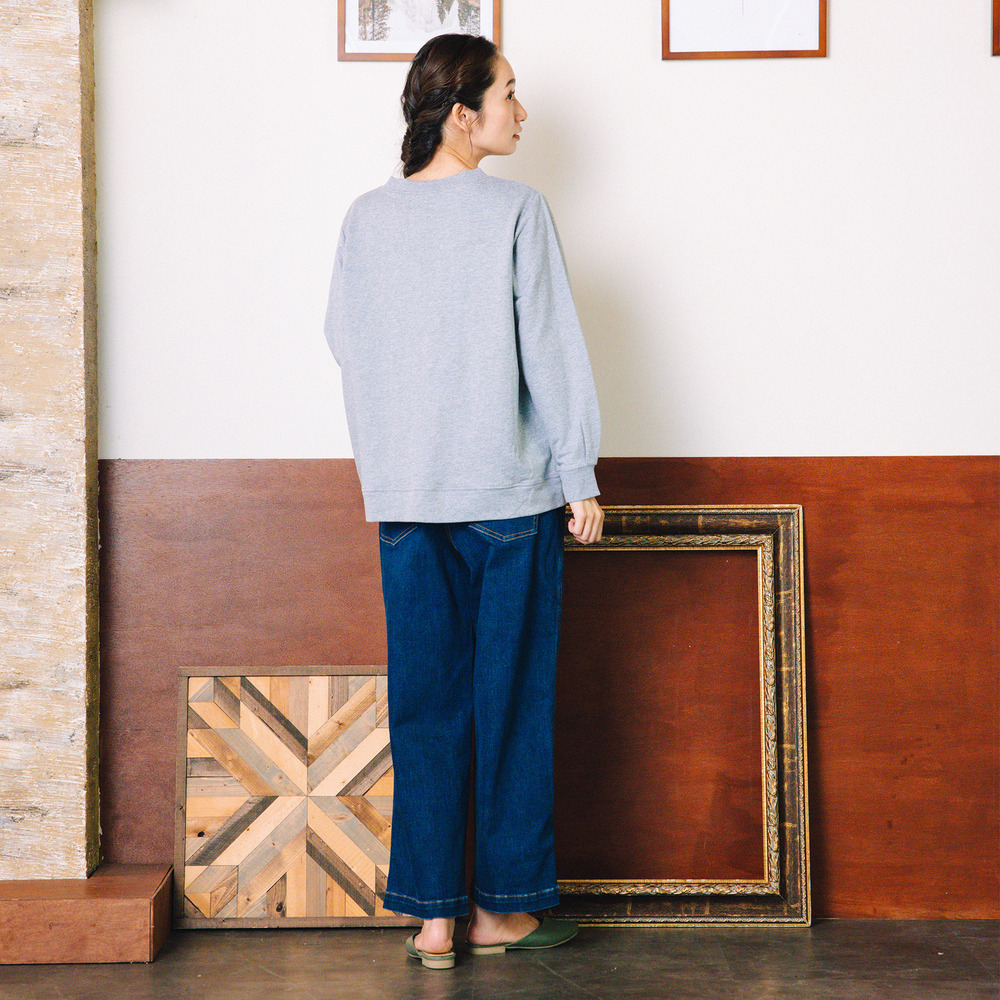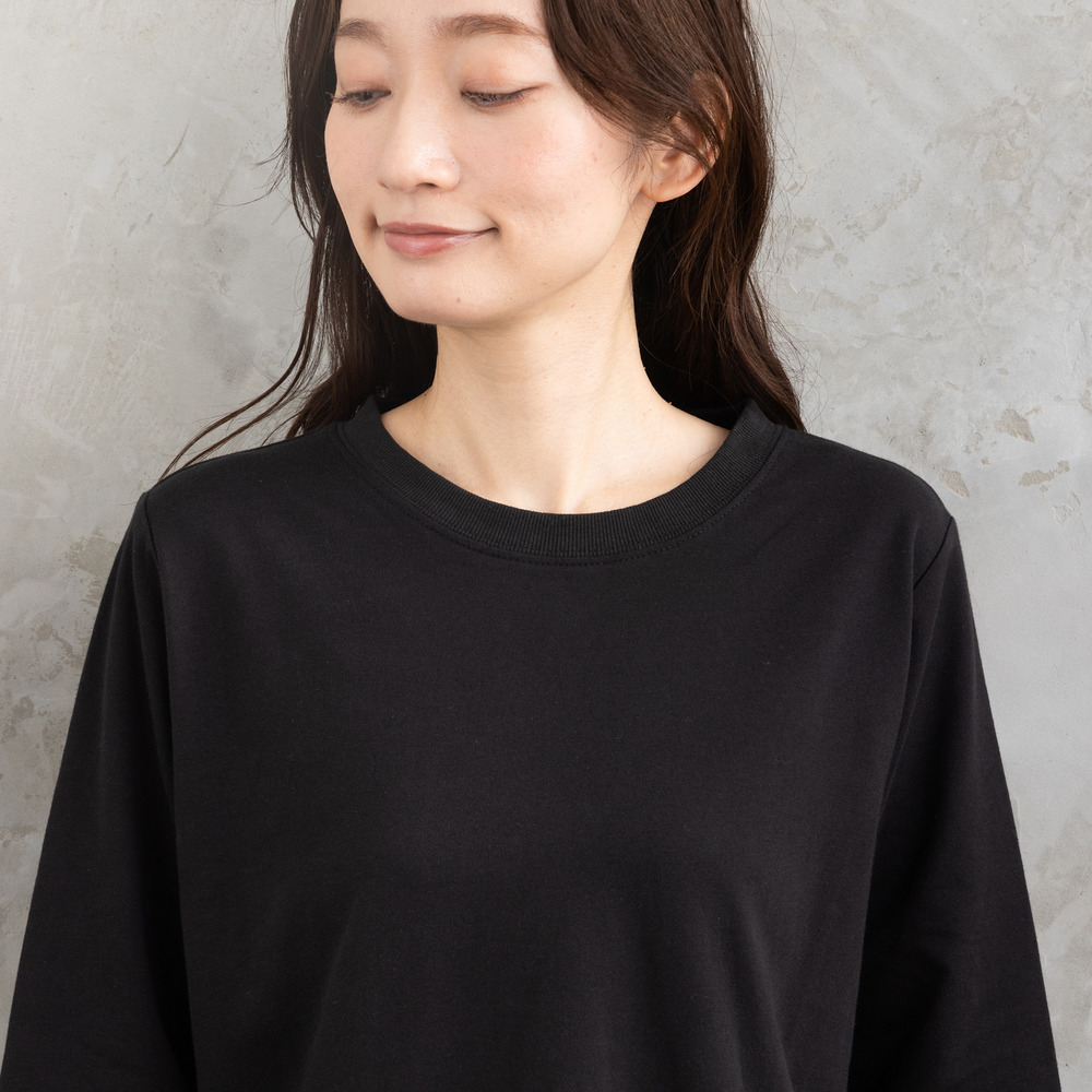 程よくゆとりを持たせたシルエットで、体のラインを拾いにくく、リラックス感ある着心地も魅力。