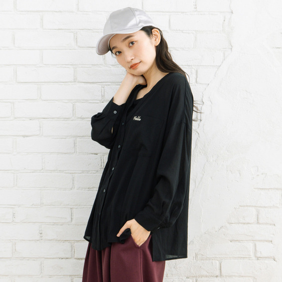 ・胸元の「Hello」刺繍がさりげないアクセントに