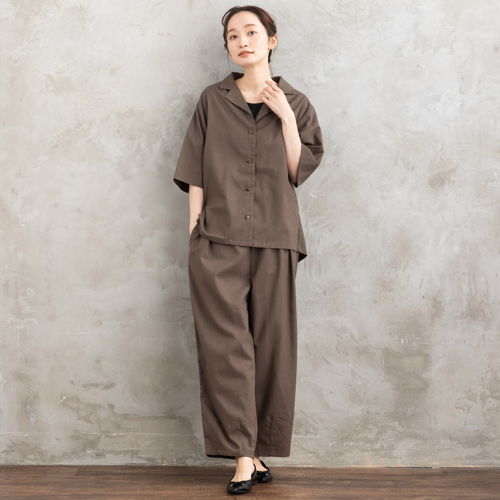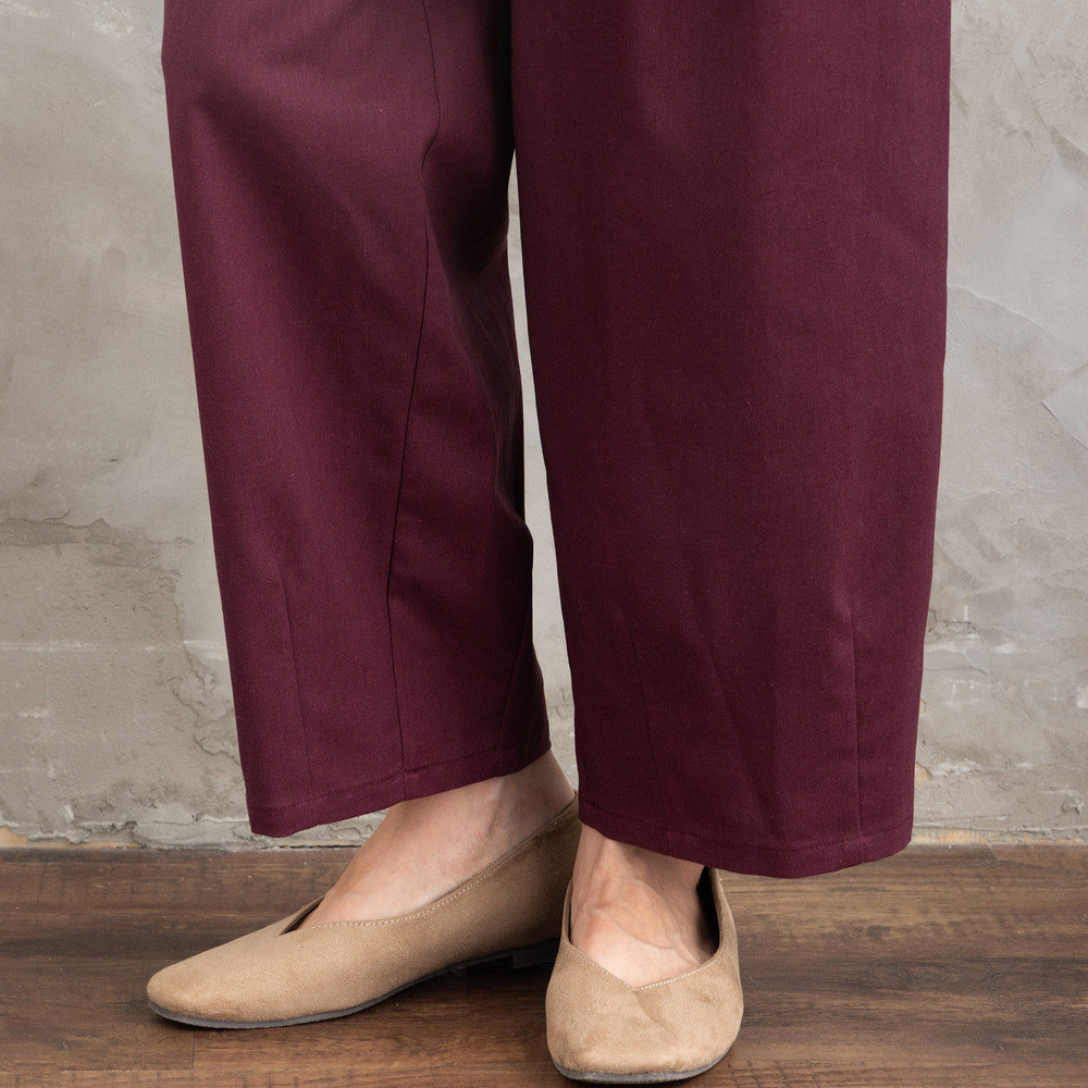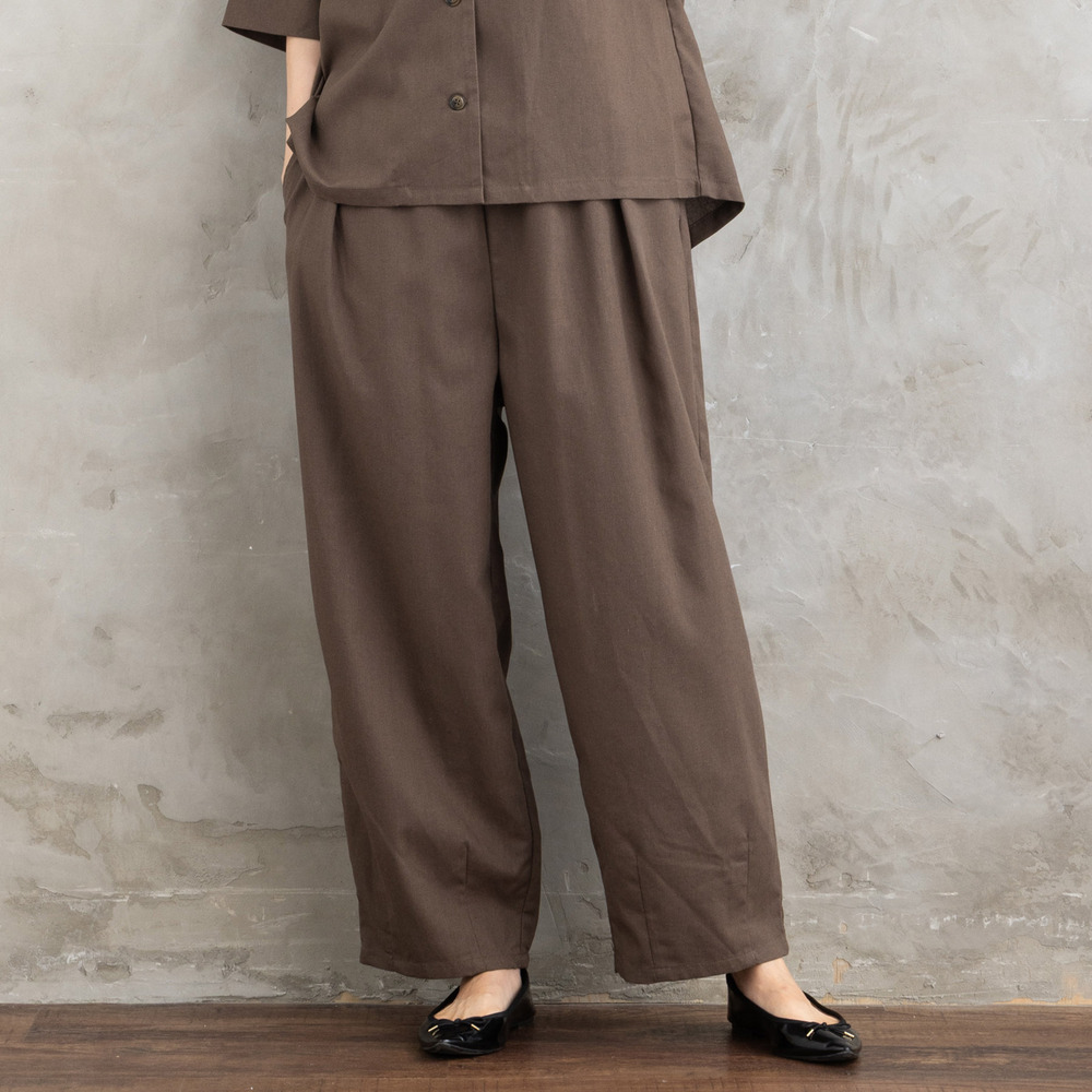 【深みカラーが装いを引き締める、リネンブレンドカーブパンツ】