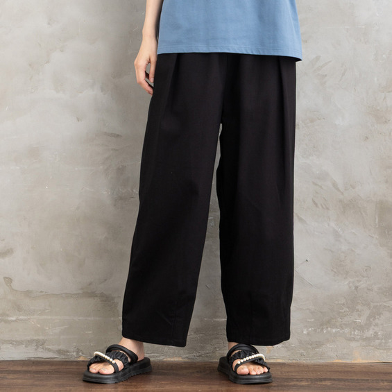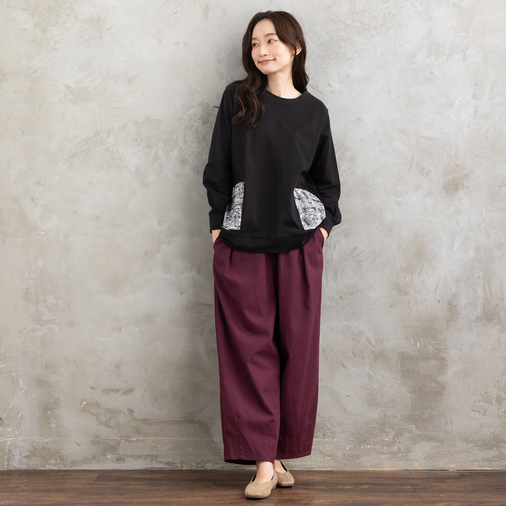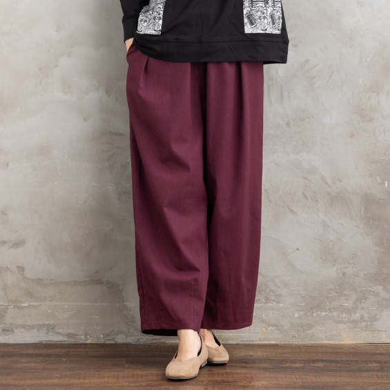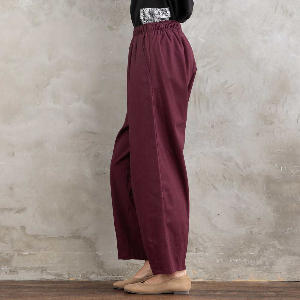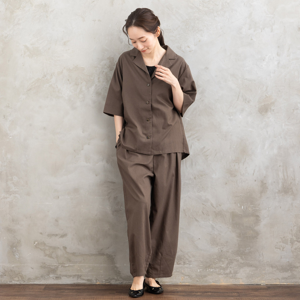 【深みカラーが装いを引き締める、リネンブレンドカーブパンツ】