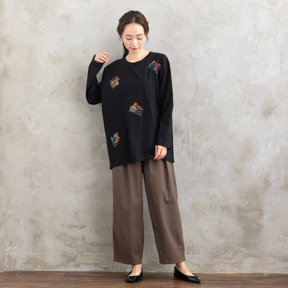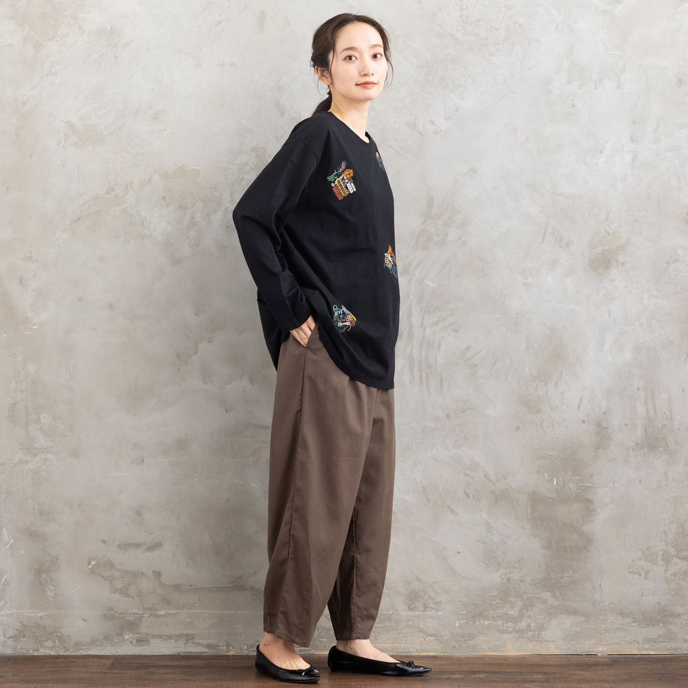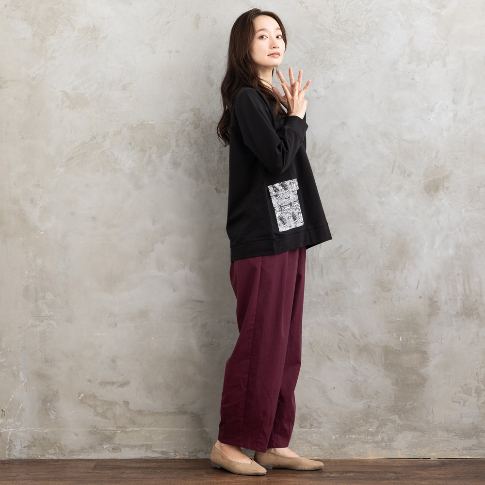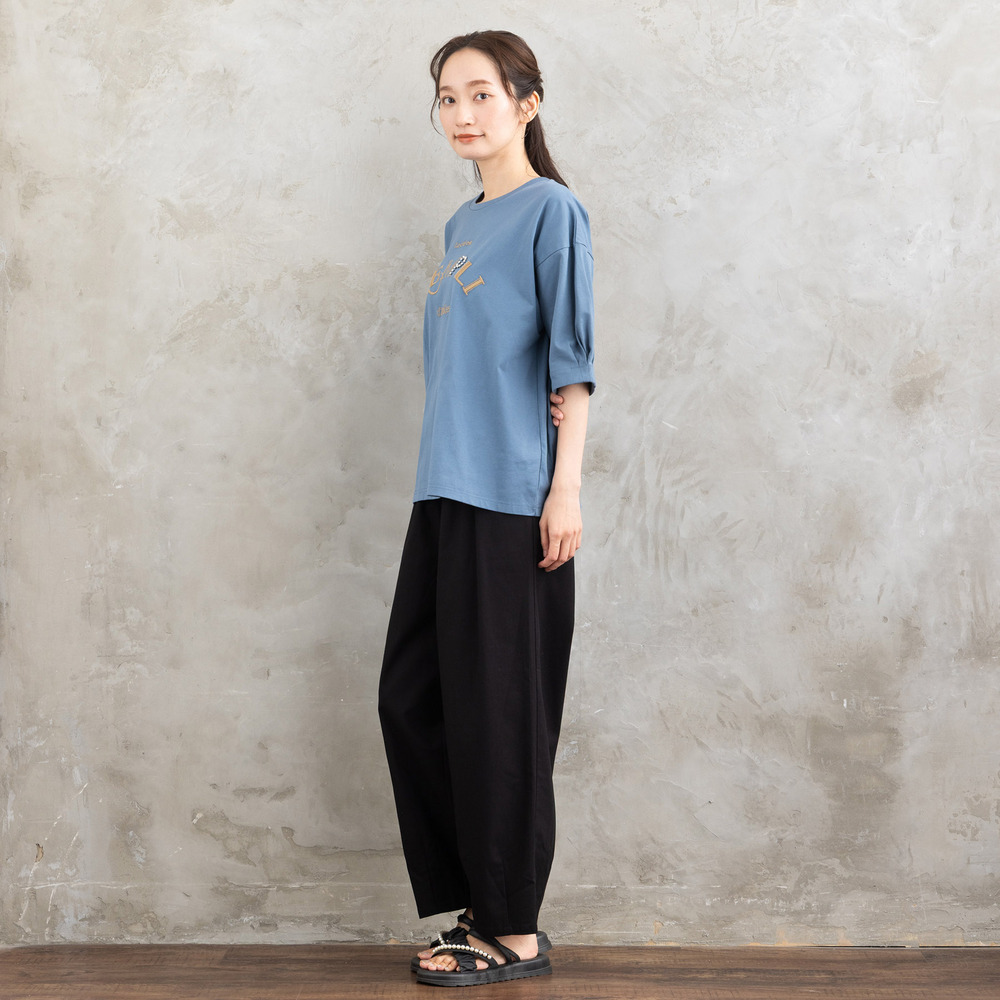 ウエストは総ゴム仕様でリラックス感のある穿き心地に。