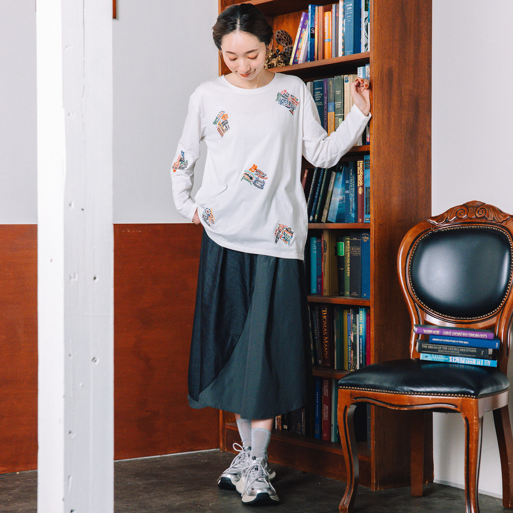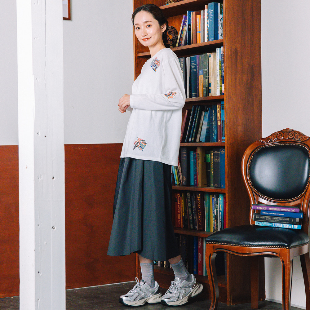 シンプルな白TやロゴTを合わせてスカートを主役にしたコーディネートがおすすめ。