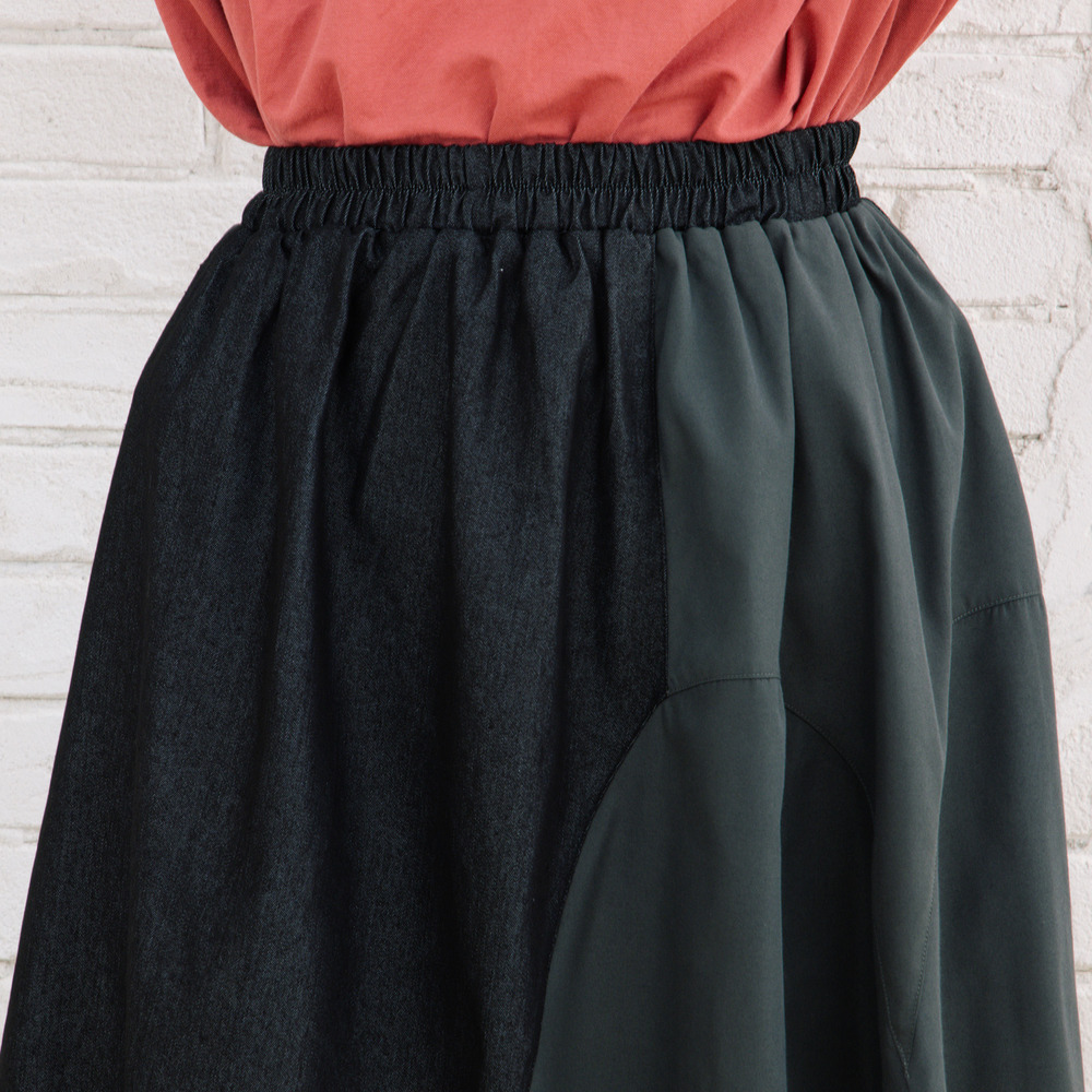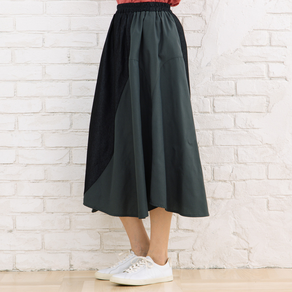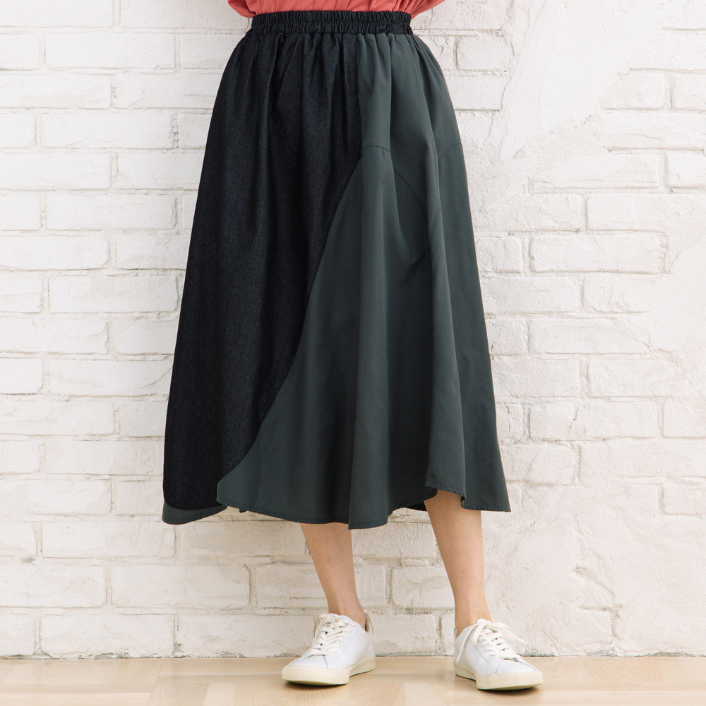 #バルーンシルエット#デニム#切り替えスカート #カラーブロック #配色デザイン #大人カジュアル #Aラインスカート #主役スカート #sabstreet