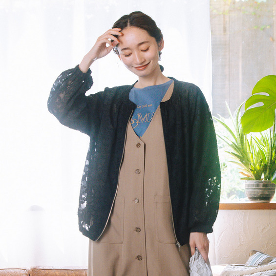 インナーにシンプルなTシャツやタンクトップを合わせて、シアー感のあるフラワー柄を引き立てるスタイリングがおすすめ。