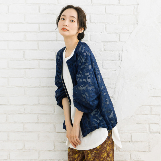 カジュアルなジップアップデザインに、繊細なシアー感が絶妙なバランスを演出します。