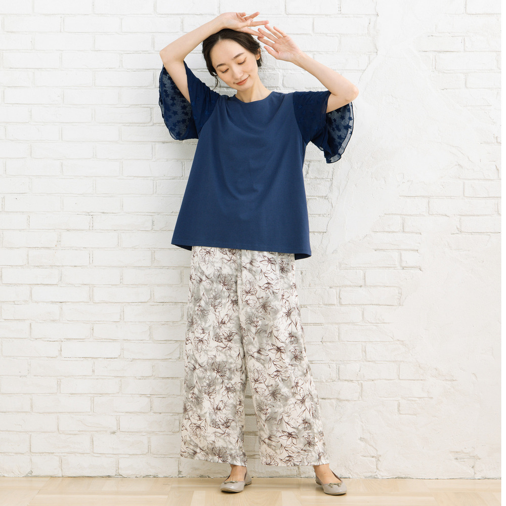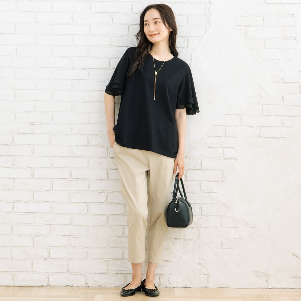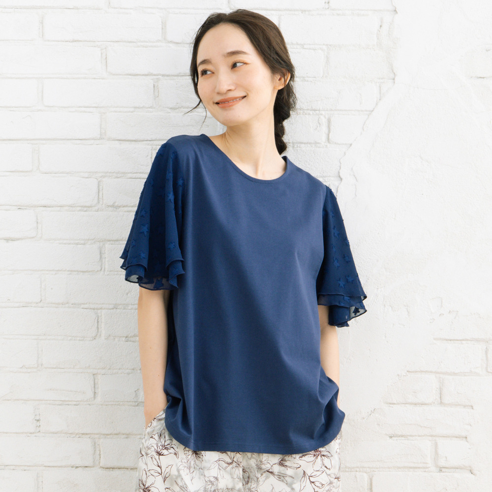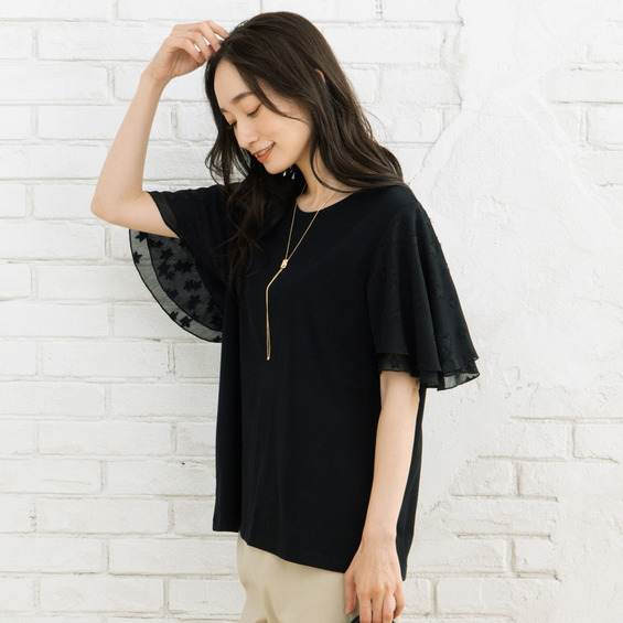 【抜け感と軽やかさをまとえる、大人のジャガードシフォンスリープカットソー】