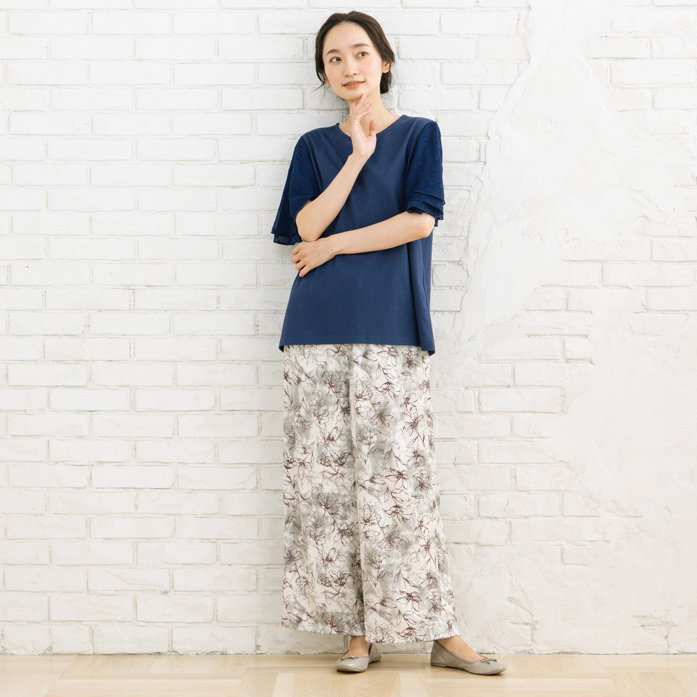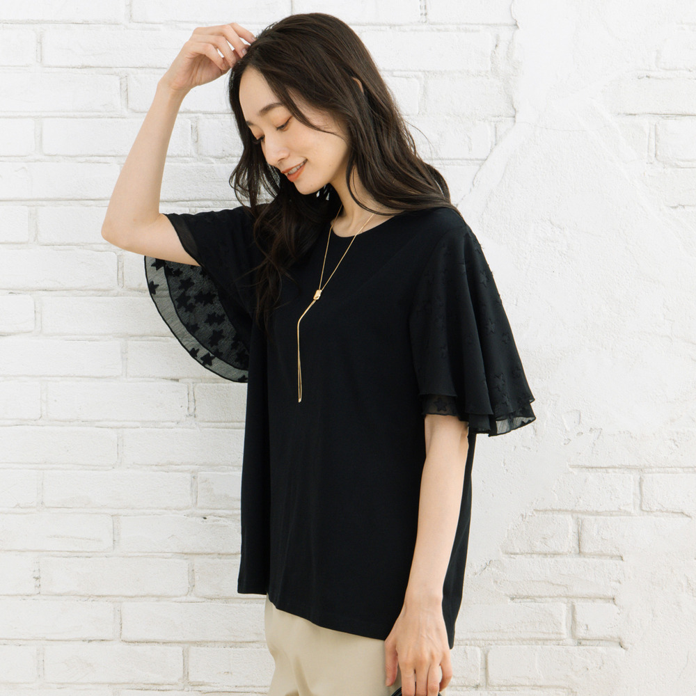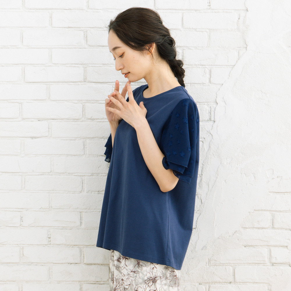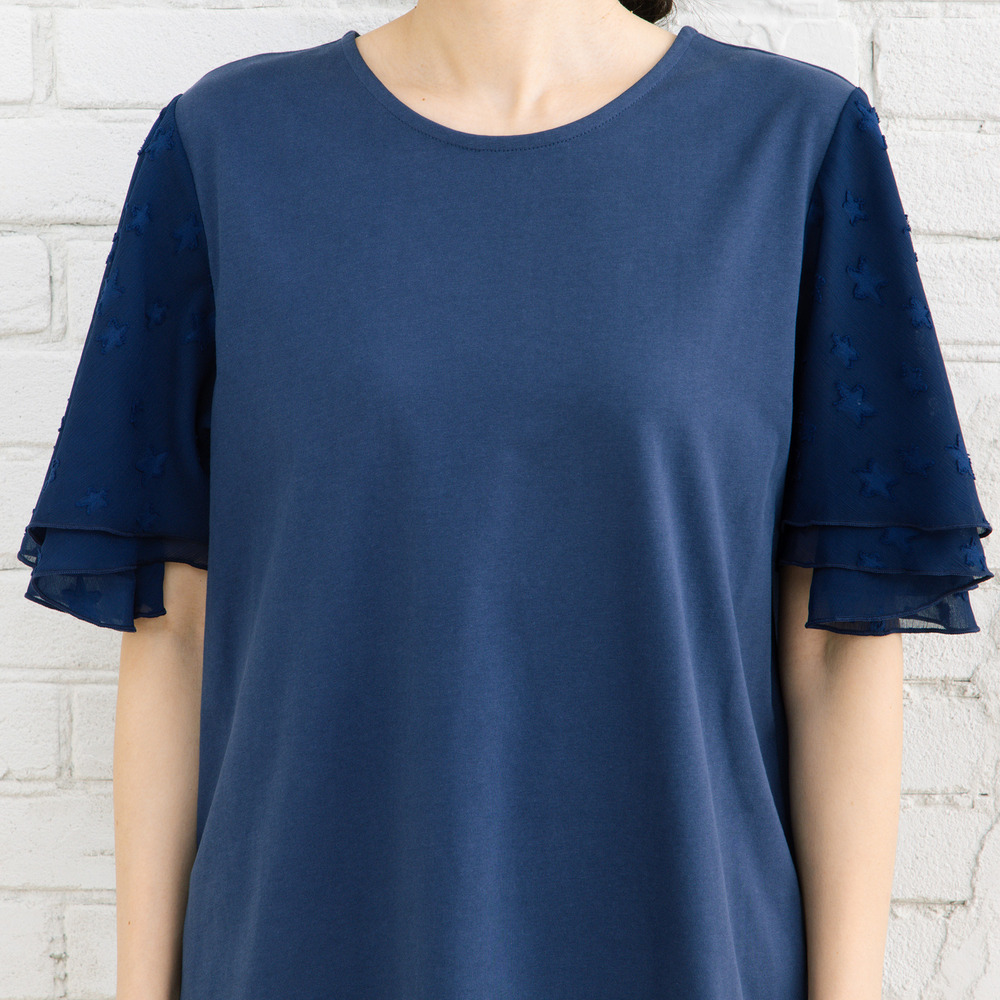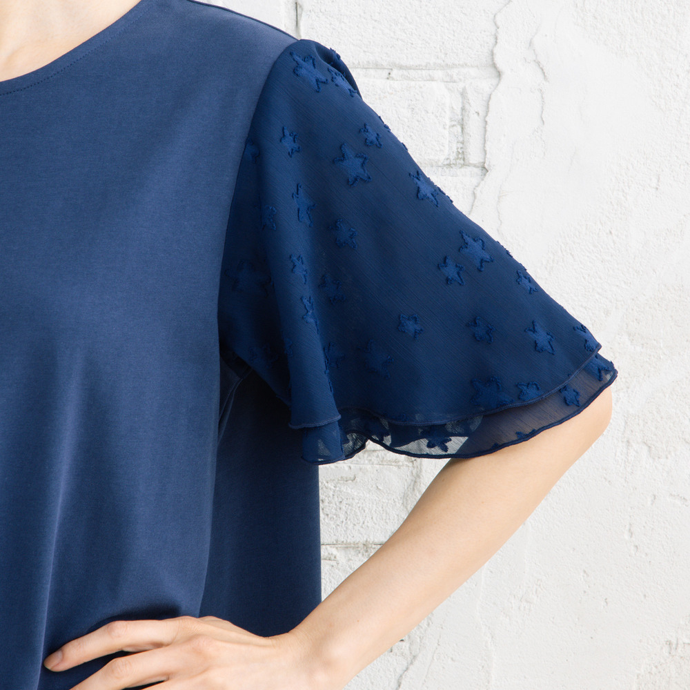 ・星柄シアー素材の袖で上品なアクセントをプラス
