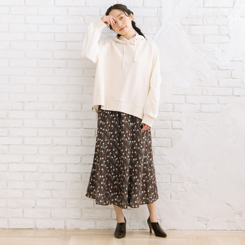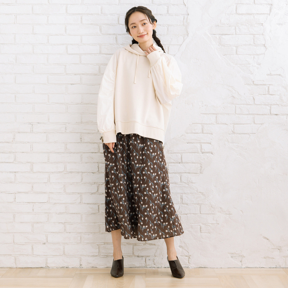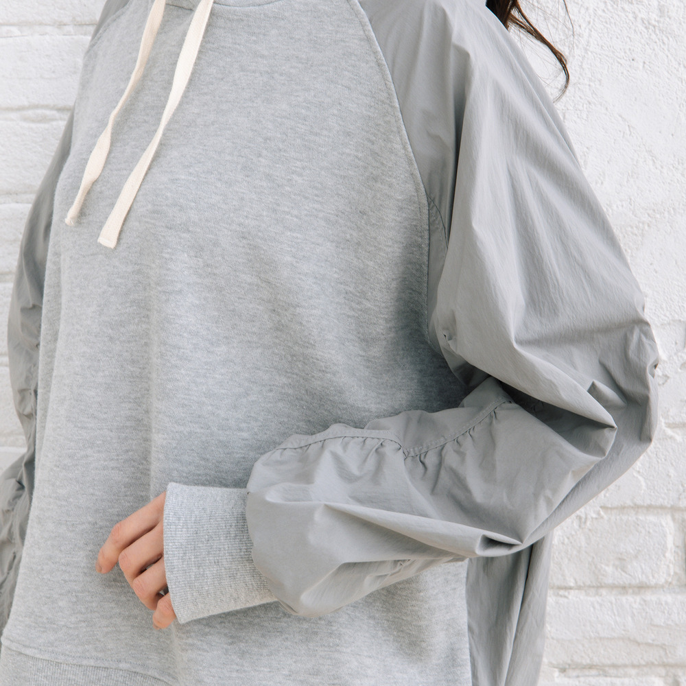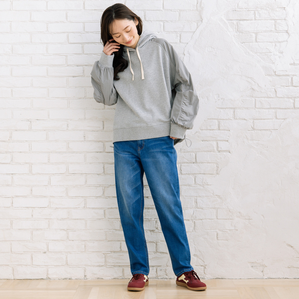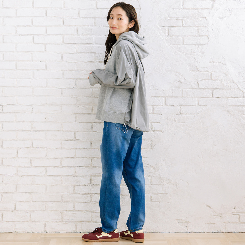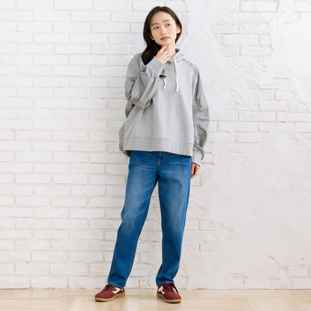 【異素材ミックスが映える、コンビデザインパーカー】