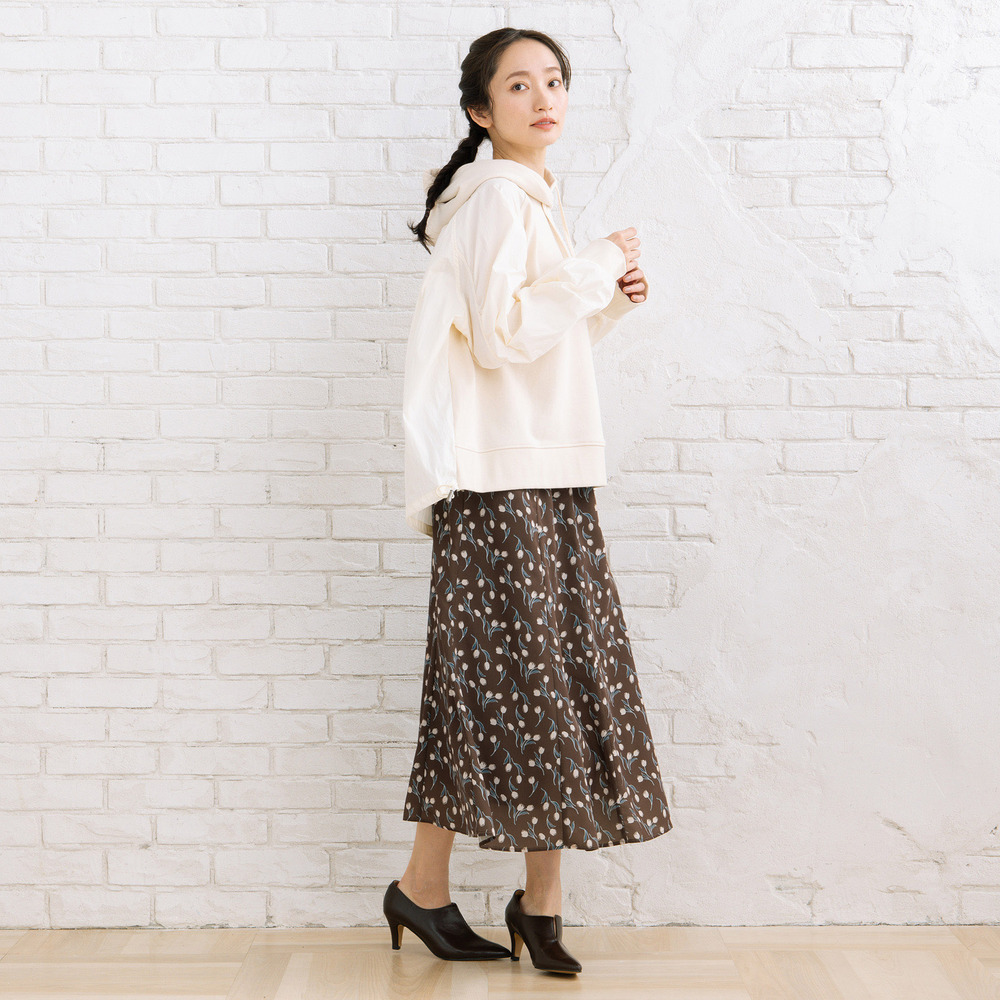 スカートと組み合わせれば、ラフさの中に女性らしさをプラスできます。