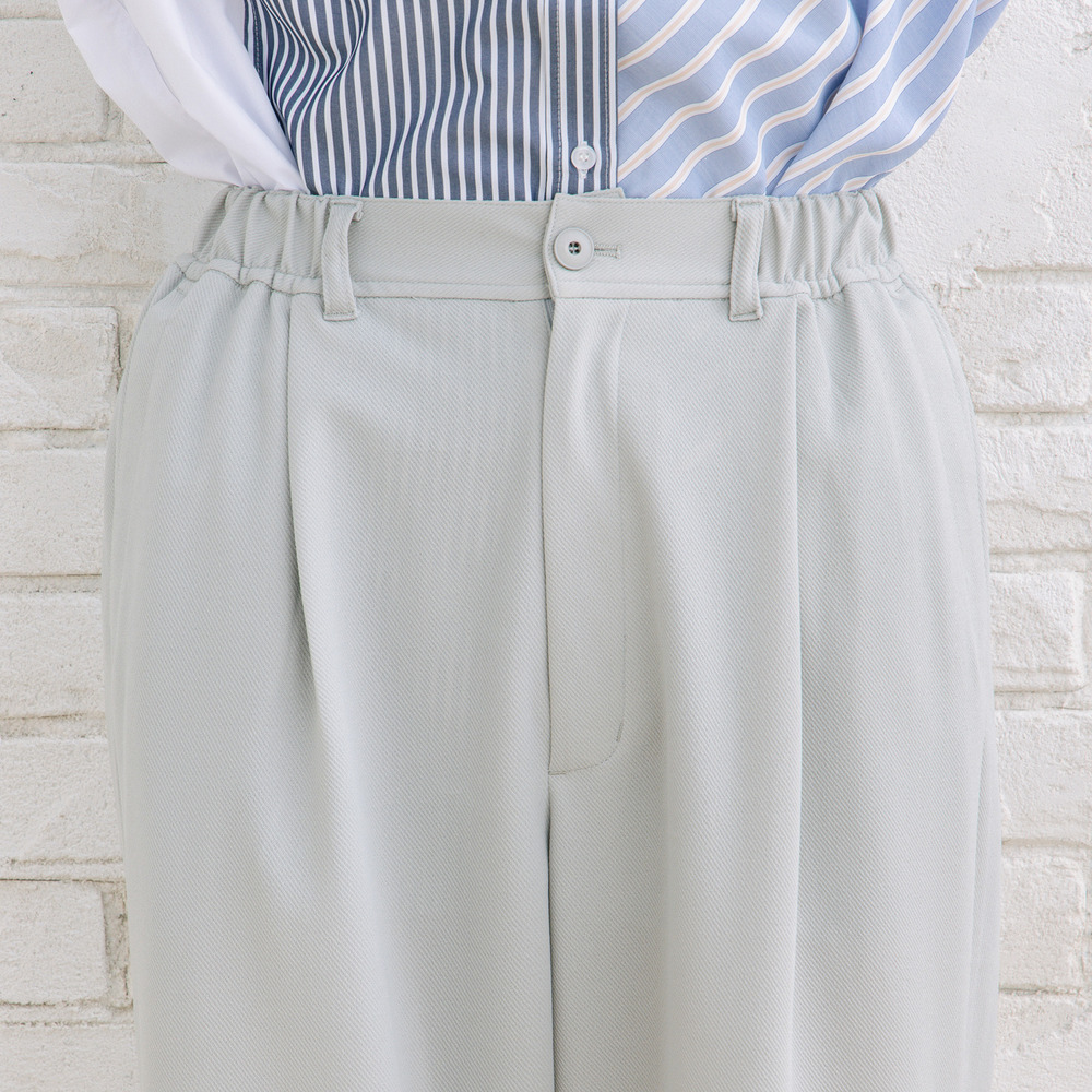 フロントにタックを入れたワイドシルエットで、自然な立体感を演出。