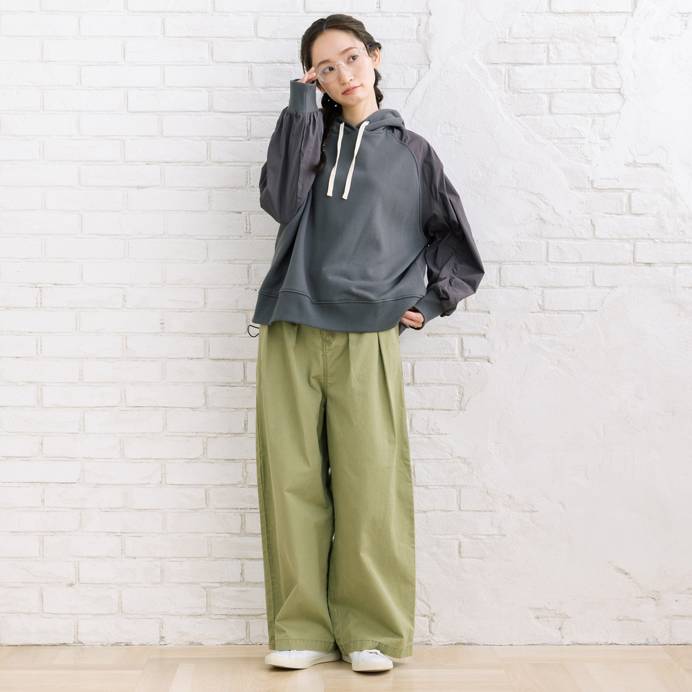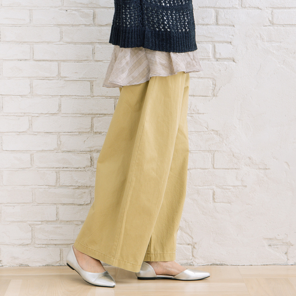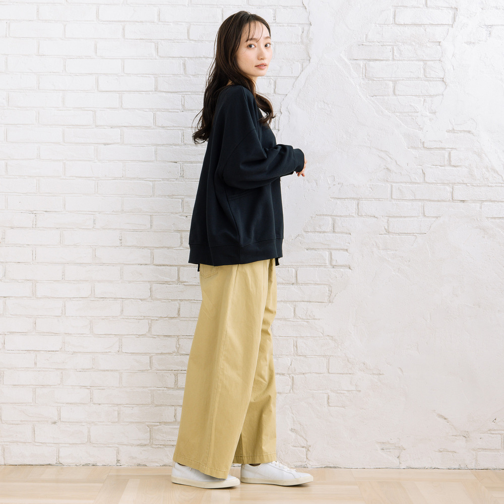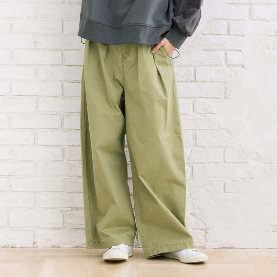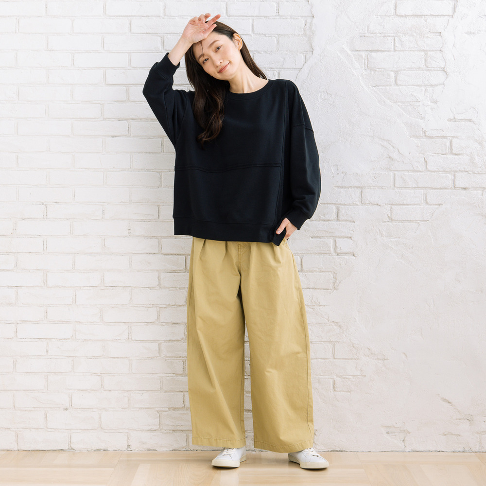 フロントタック入りのワイドシルエットで、ほどよく力の抜けた大人カジュアルが楽しめます。