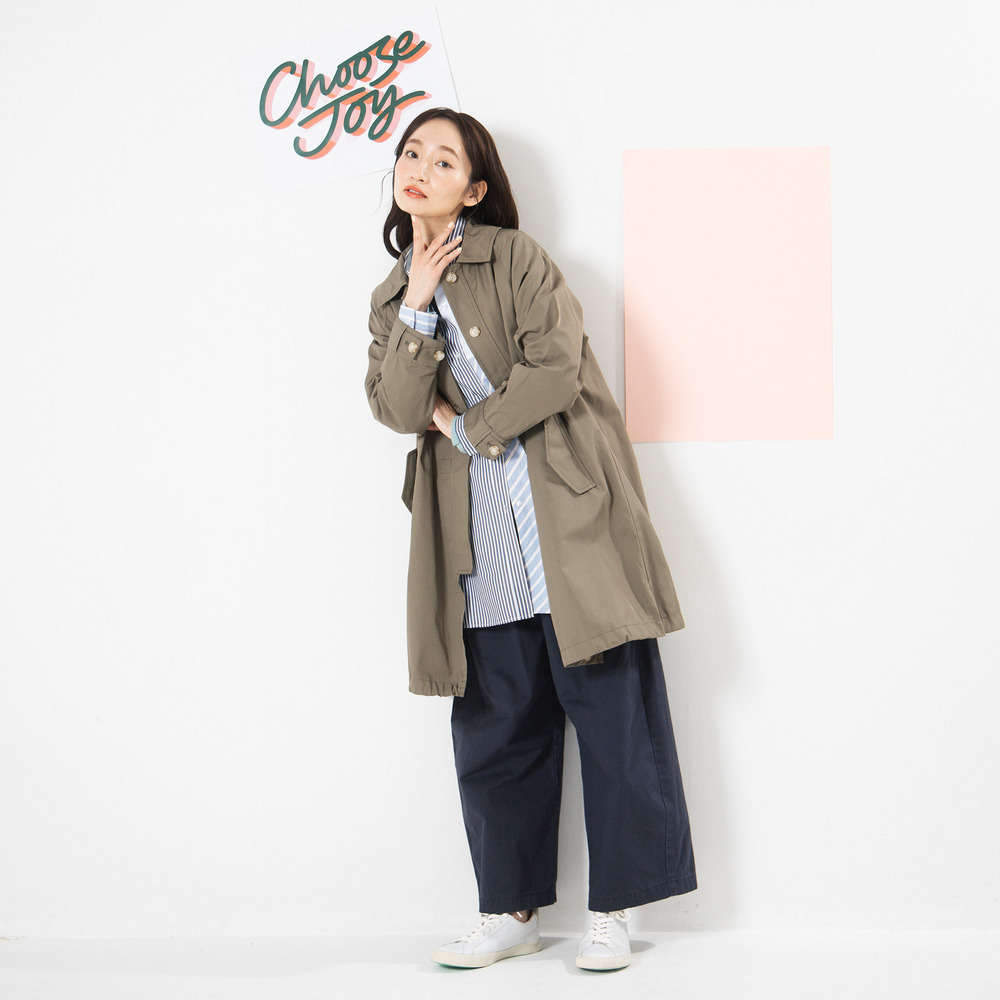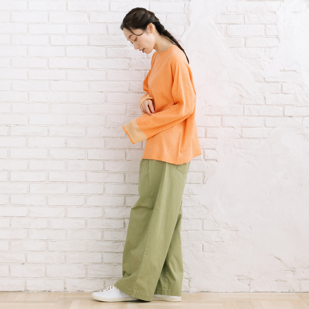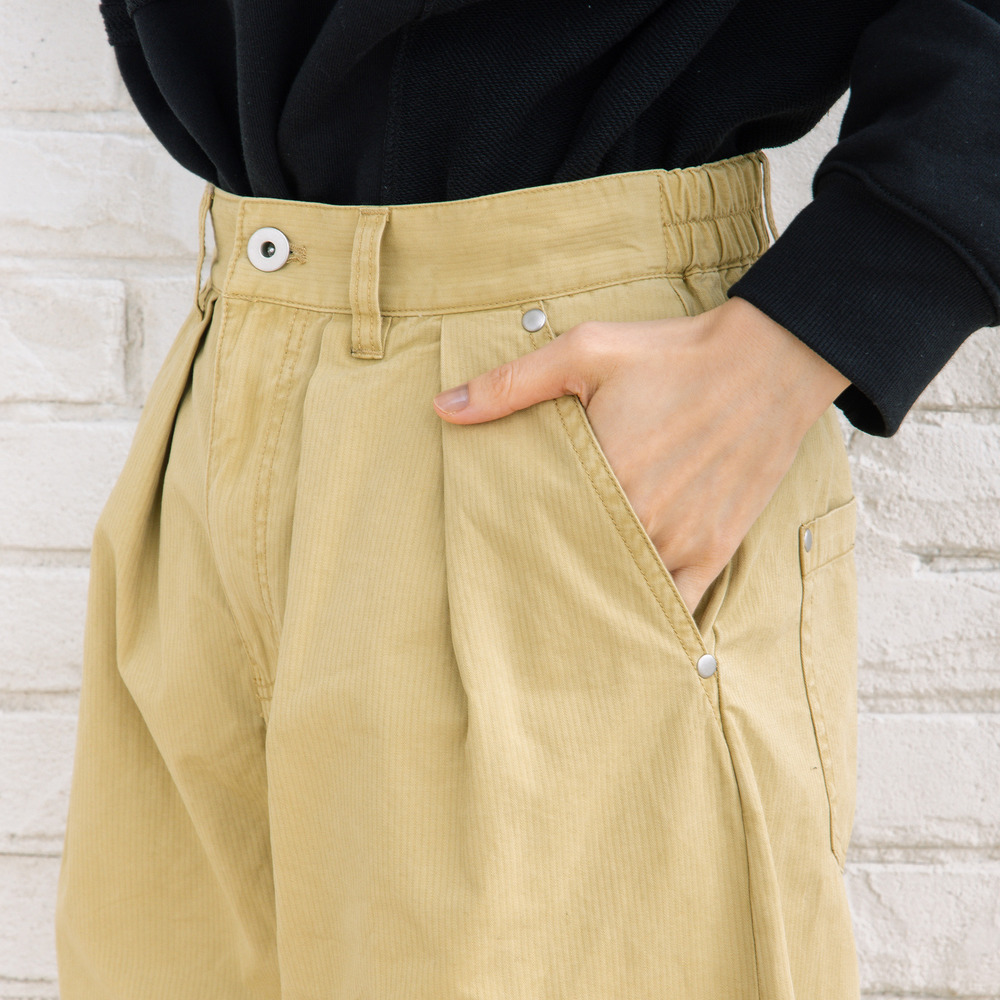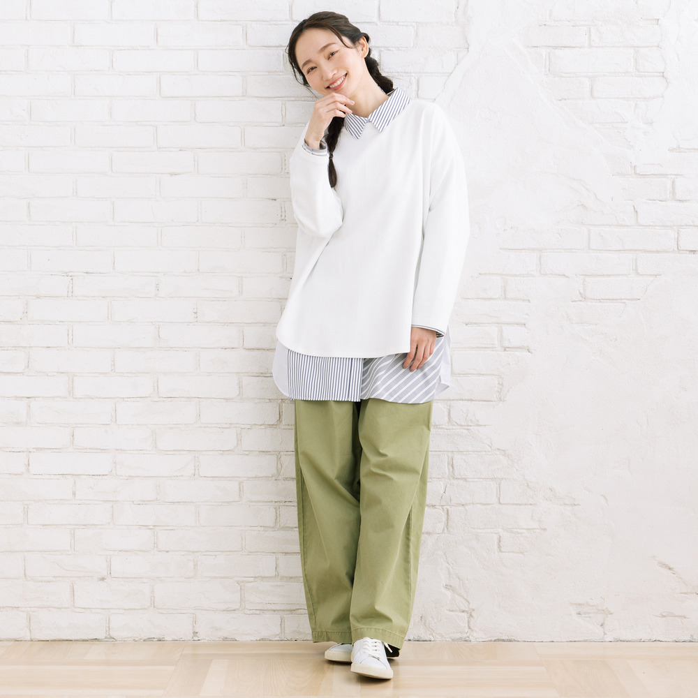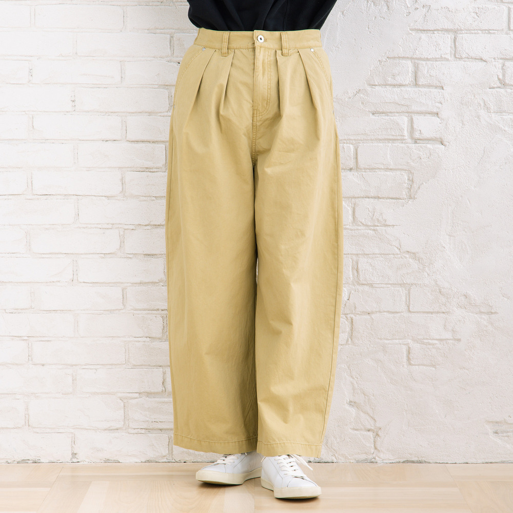 フロントタック入りのワイドシルエットで、ほどよく力の抜けた大人カジュアルが楽しめます。