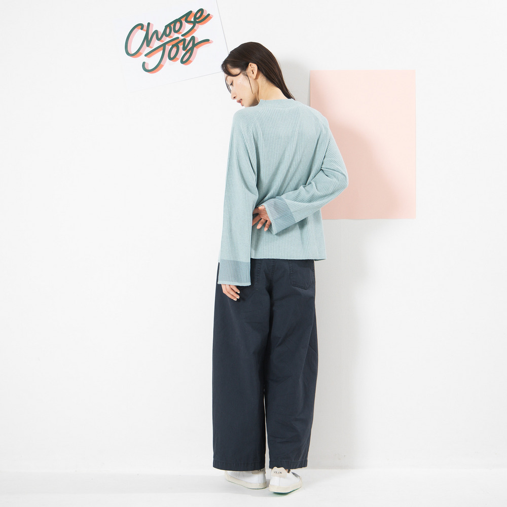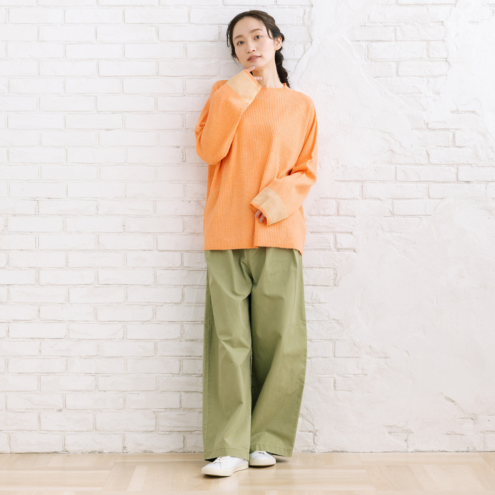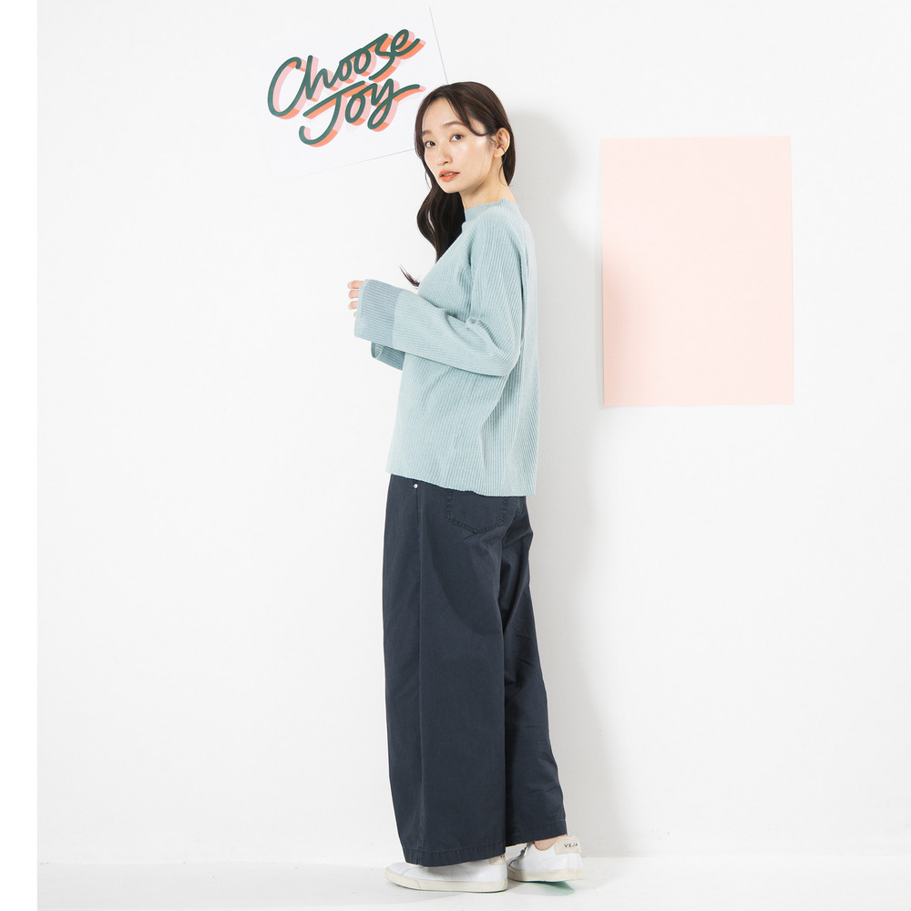 コンパクトなトップスを合わせて、パンツを主役に。