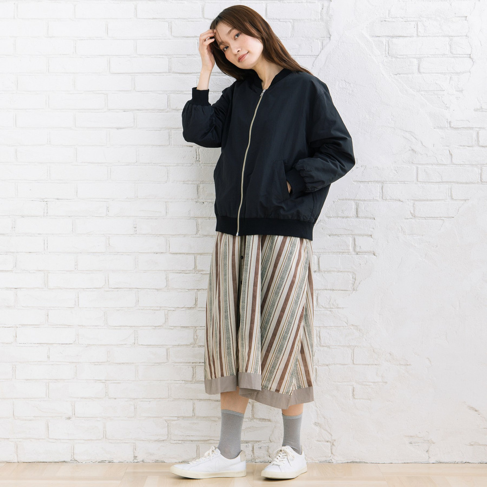 ベーシックなMA-1デザインに、見えない部分で表情をプラスした大人カジュアルに仕上げました。