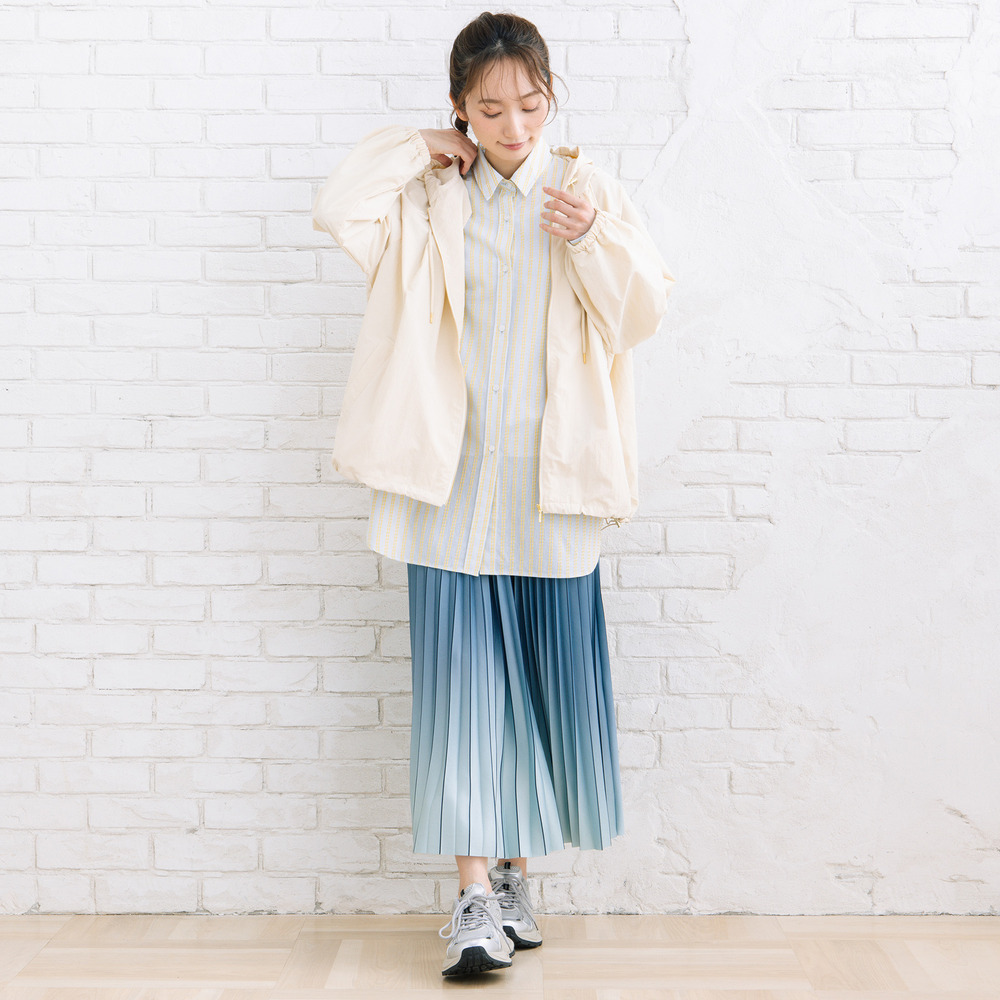 カットソーやワンピースの上にラフに羽織って、季節の変わり目に活躍。
